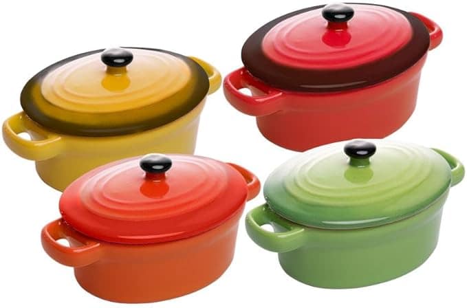 Kit de 4 Mini Panelas de Porcelana com Tampa Coloridas 15x8cm Wolff: Elegância e Versatilidade na Cozinha