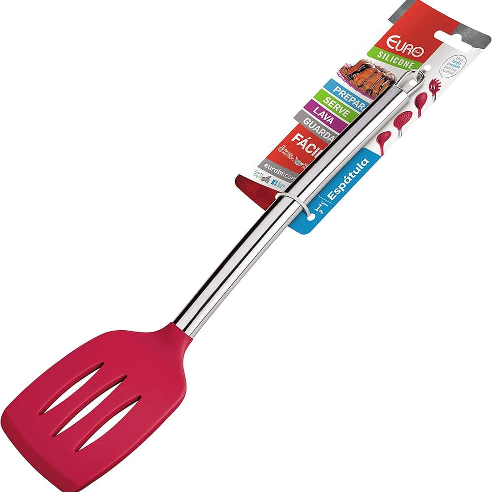 Espátula Vazada de Silicone vermelha, SIL2850-VM, Euro Home