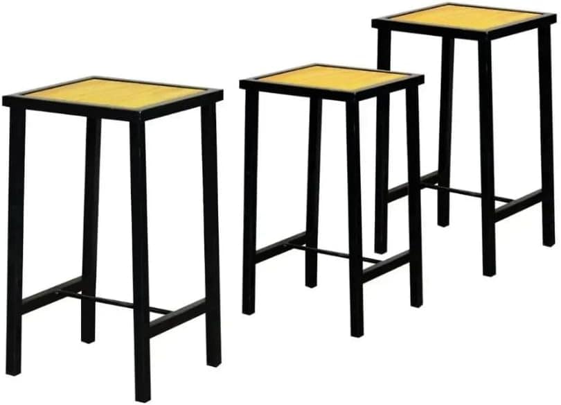 Jogo 3 Banqueta Baixa Industrial Preta Madeira Natural