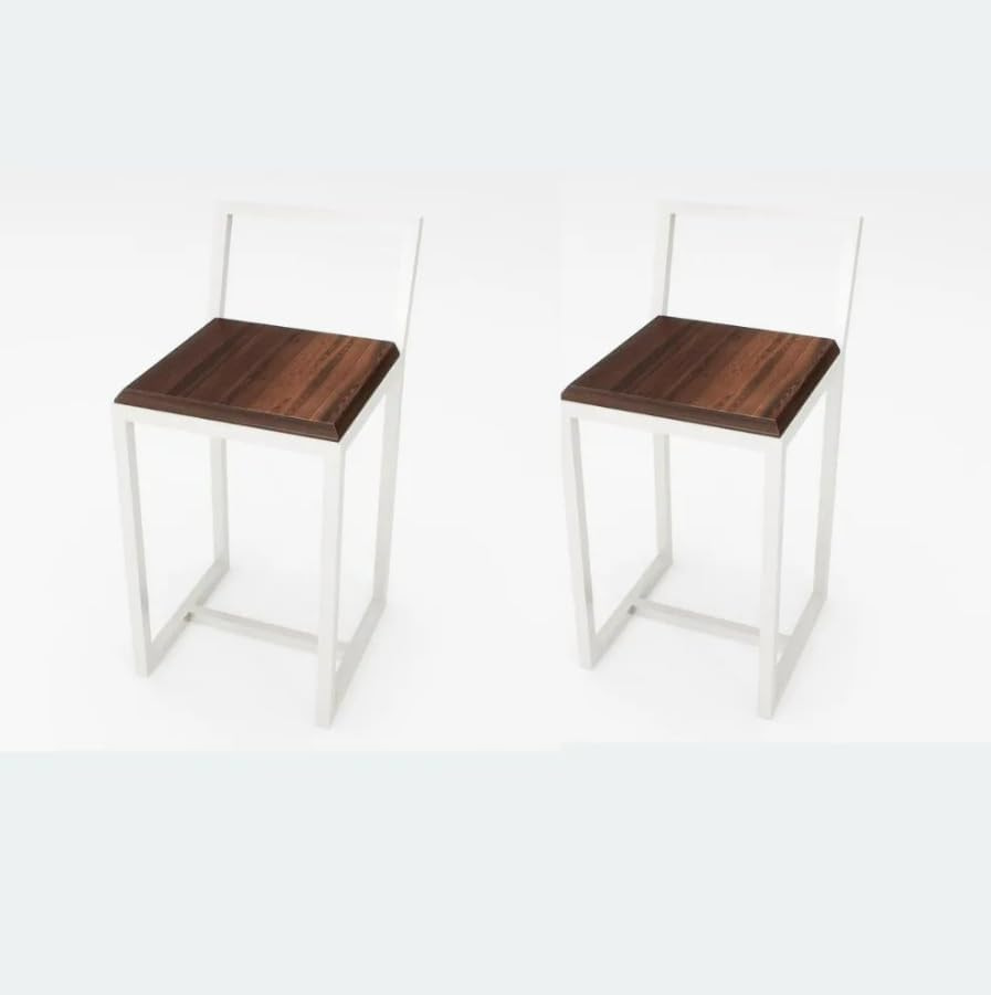 Jogo 2 Banqueta Baixa Para Cozinha Branca Assento Imbuia Ind…