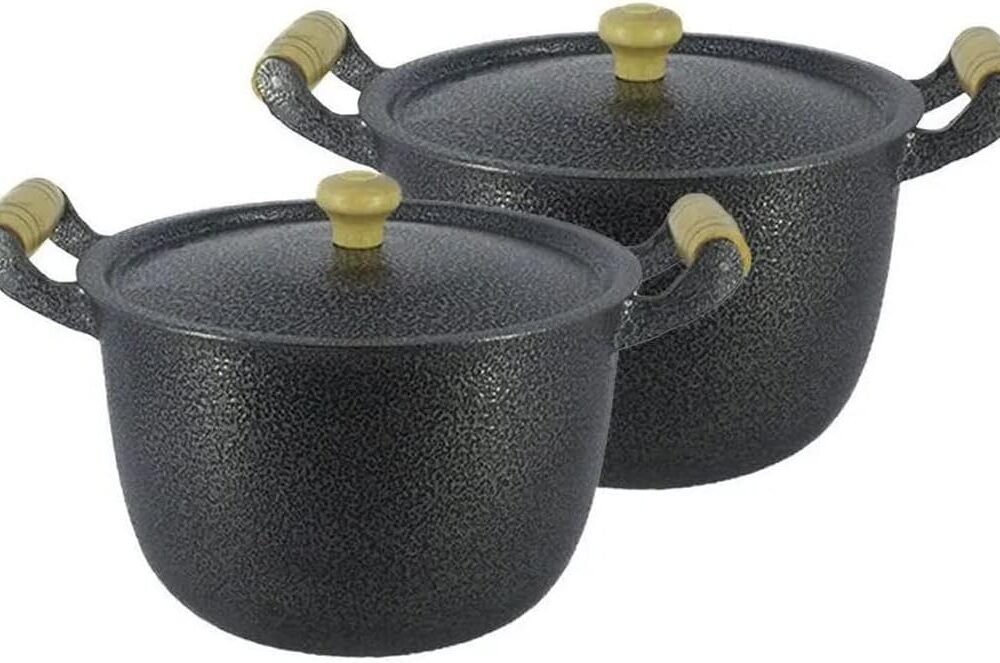 Jogo 2 Caldeirões Aluminio Batido Craqueado Preto 800 Ml Alç…