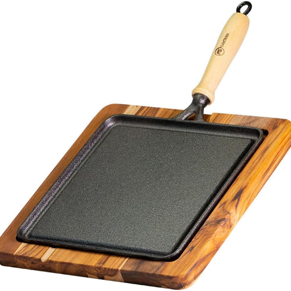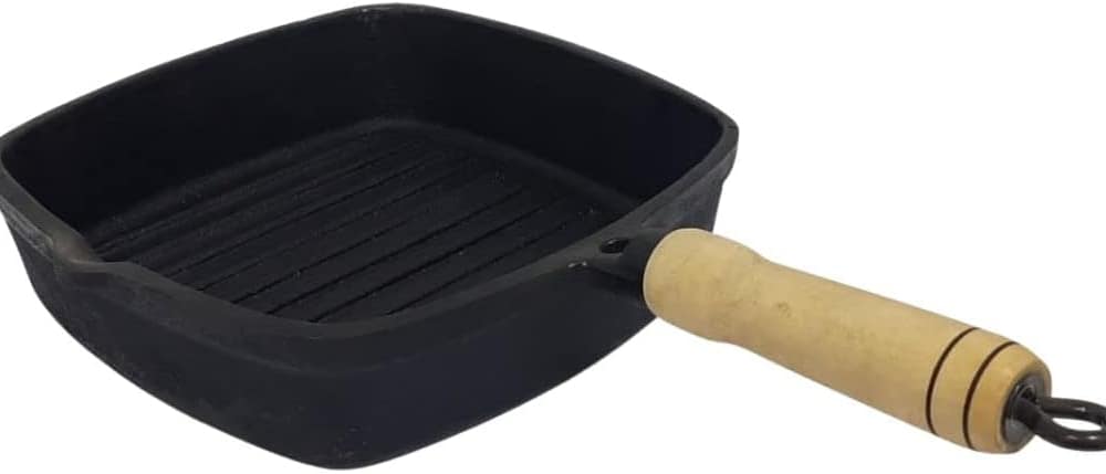 Bifeteira Quadrada de Ferro Fundido Com Base de Madeira 7307…