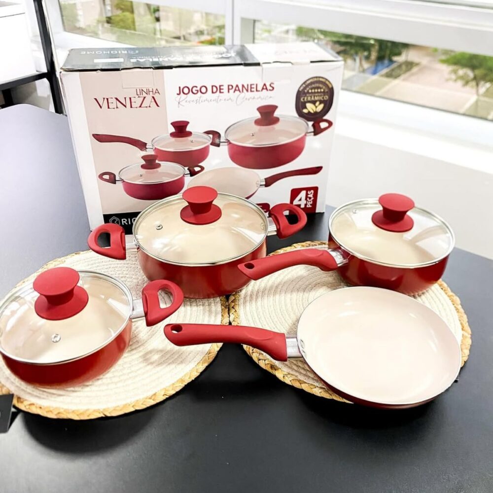 Conjunto de Panelas Cerâmica Antiaderente Jogo 4 Peças Refor…
