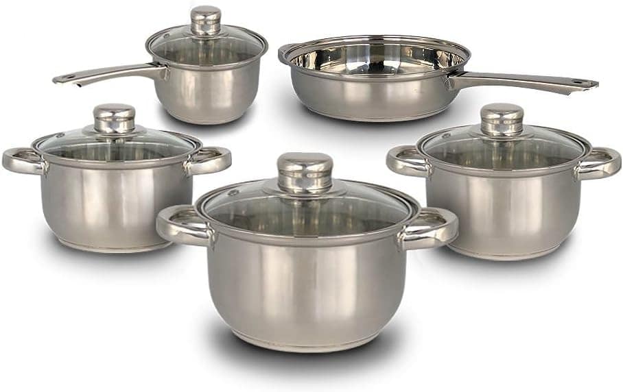 Conjunto de Panelas em Aço Inox, 5 Peças, Tampa de Vidro, 16…