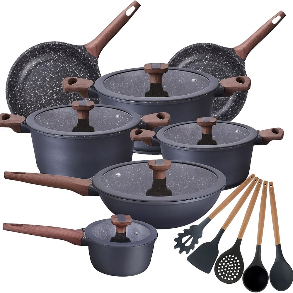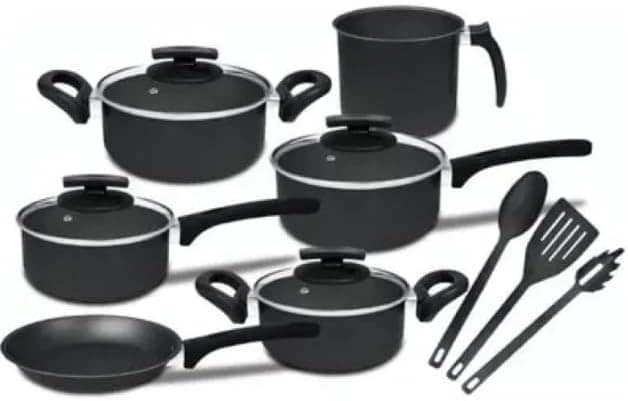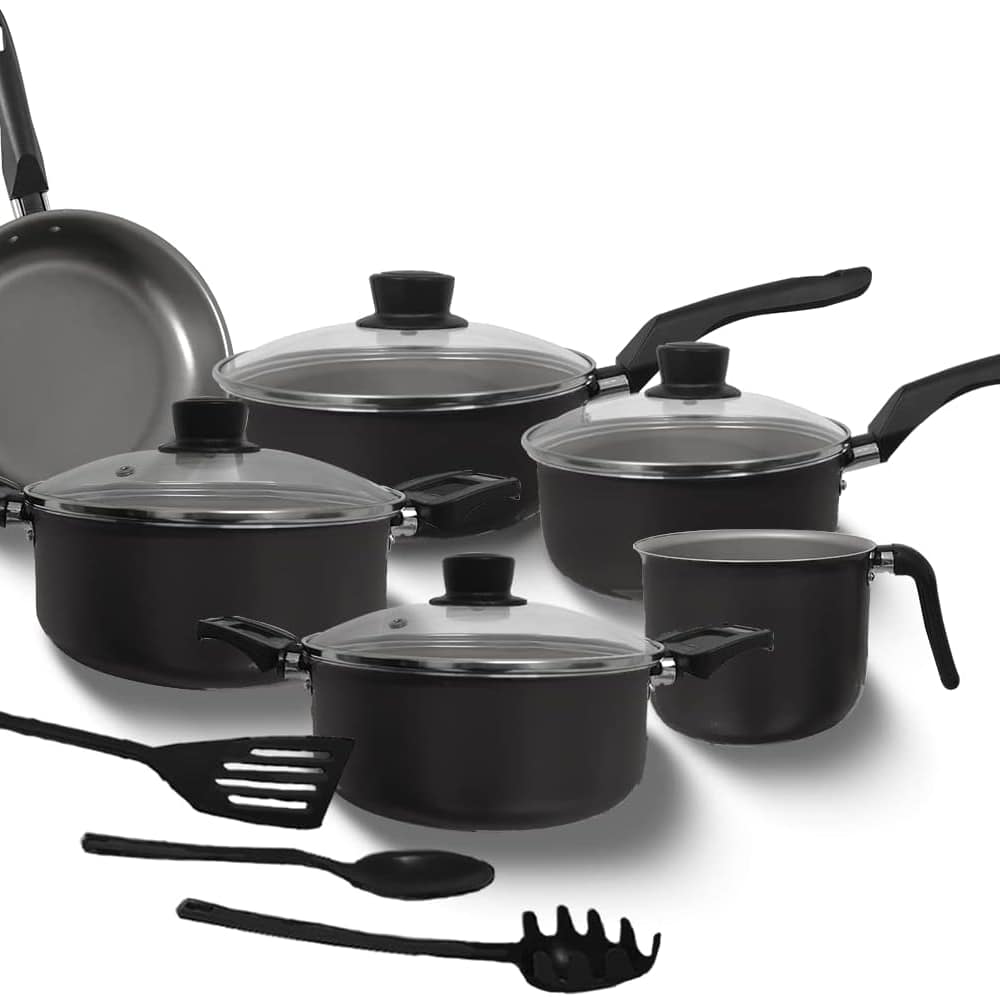 Jogo de Panelas 10 Peças Preto Antiaderente c/Tampa de Vidro…