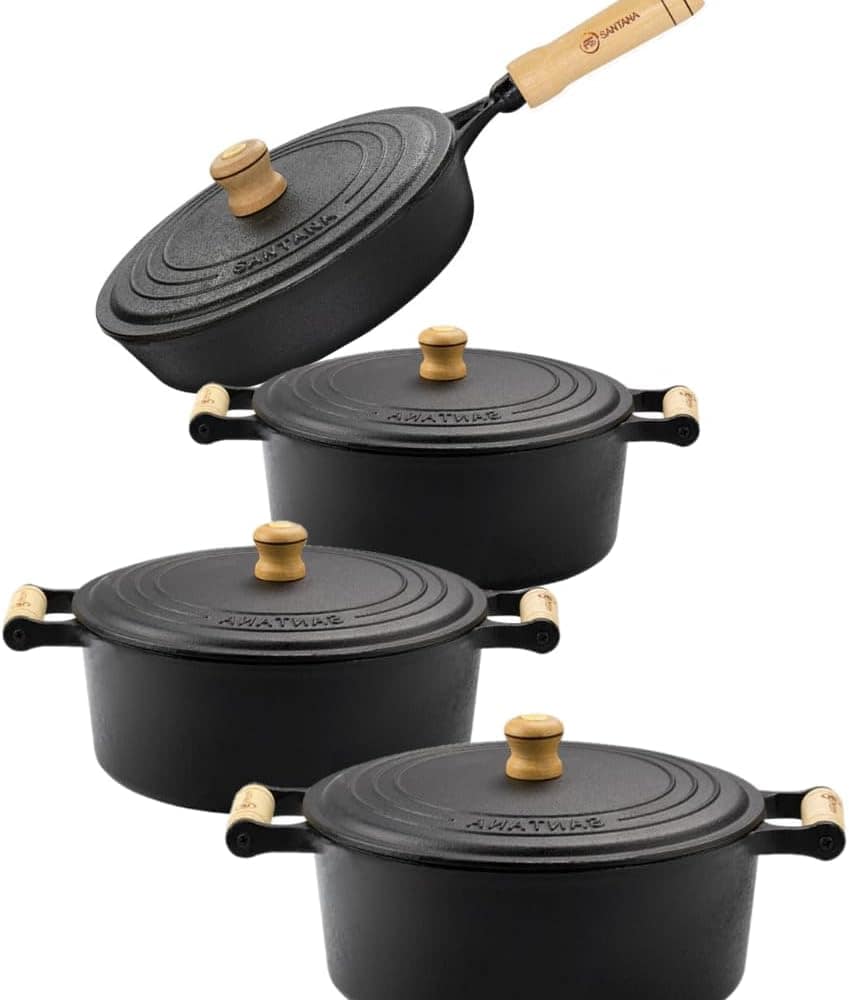 Jogo de Panela Caçarolas 16, 18, 22 tampa de ferro alça de m…