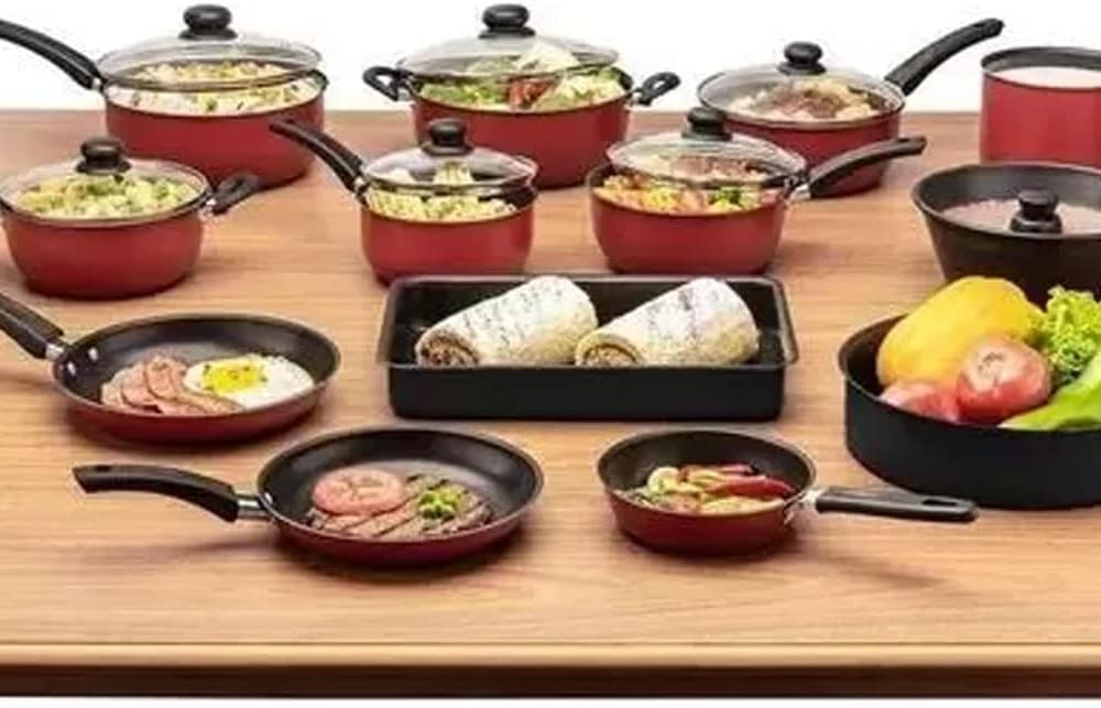 Conjunto de panelas 13 peças antiadrente tampa de vidro (Pre…