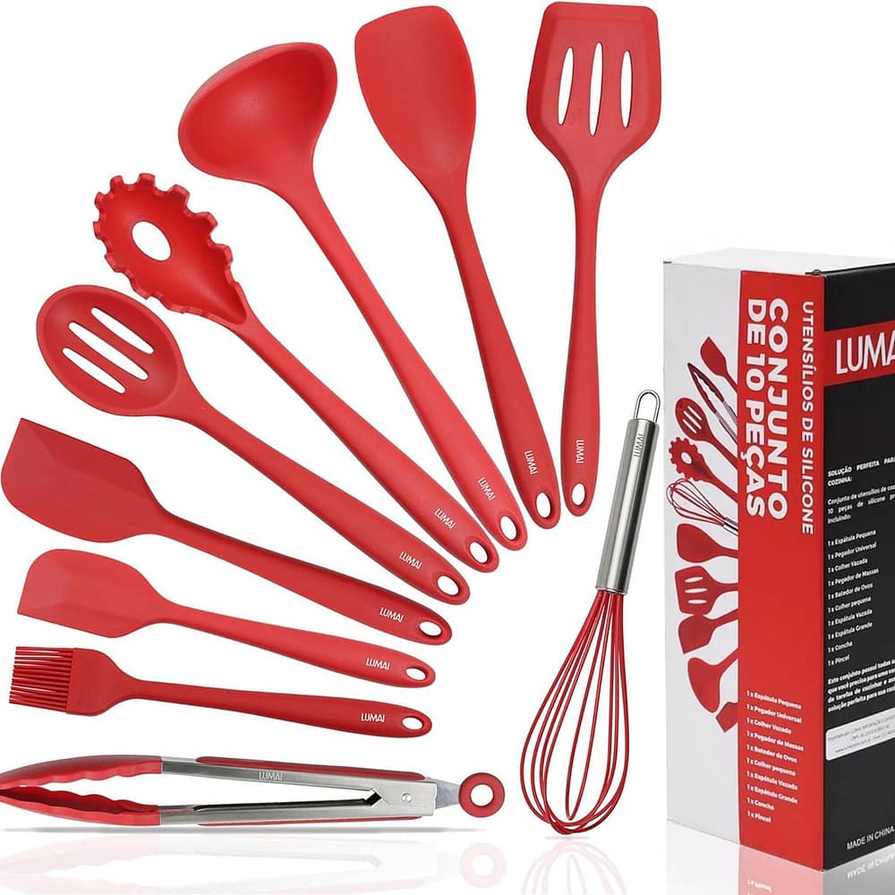 Conjunto 10 Utensilios De Cozinha Silicone C/Cabo Aço Inox L…