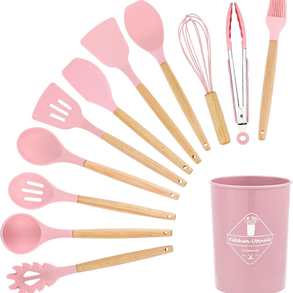 Conjunto de Utensílios de Cozinha de Silicone com Cabo de Ma…