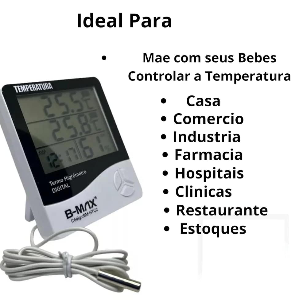 Termômetro e Higrômetro Digital com Relógio Registro de Temp…