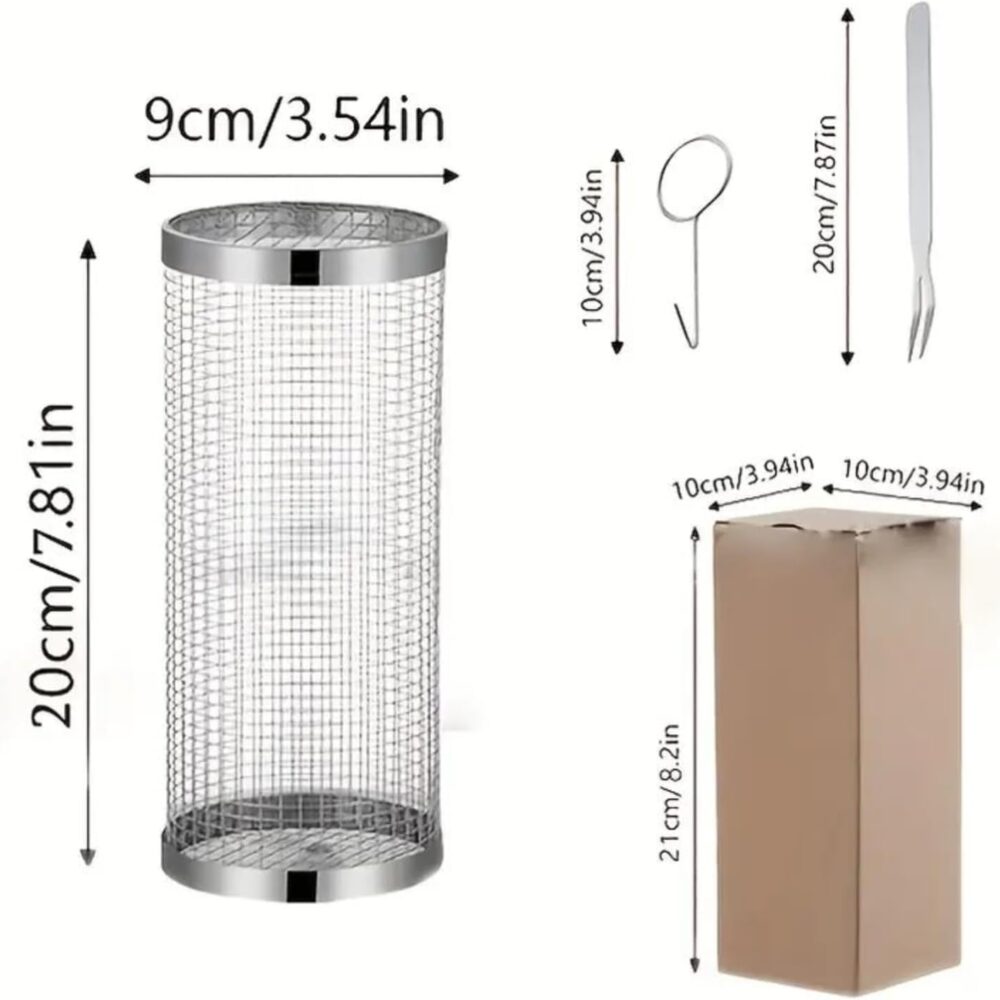 Gaiola de 3 peças + garfo + gancho para churrasqueira com ta…