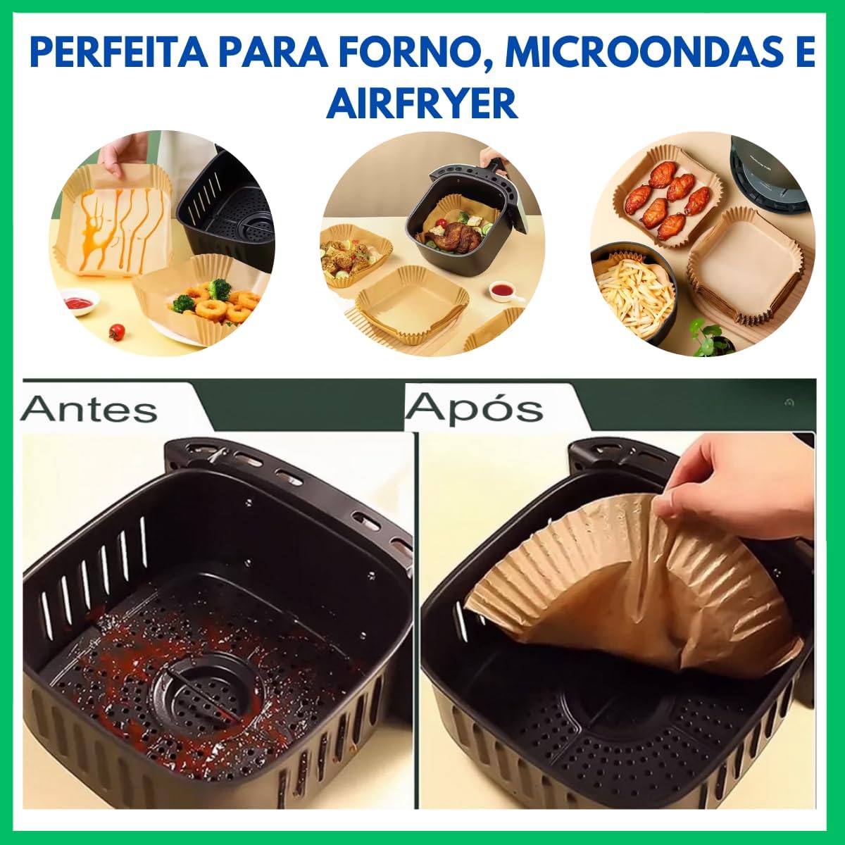 Com certeza! Elas são perfeitas para usar na airfryer. Evitam que os alimentos grudem na grade e facilitam a limpeza.