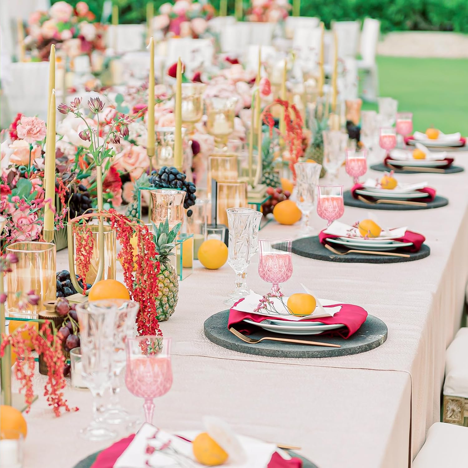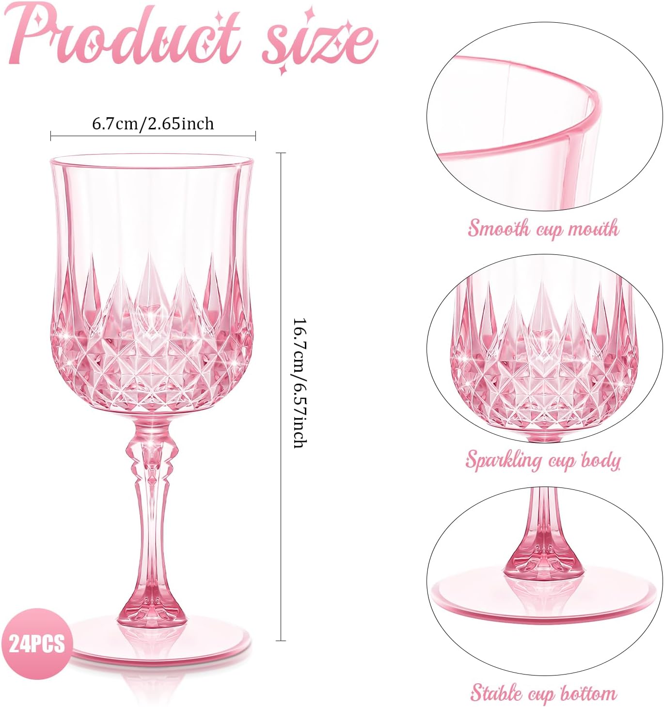 Review: These pink plastic wine glasses are excellent! The quality is surprisingly good — they look just like real glass and add a nice touch to any event. Perfect for parties or outdoor use. Highly recommend