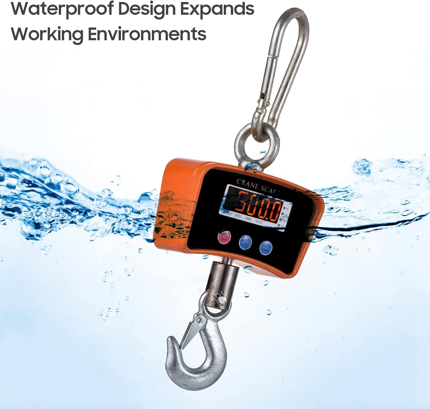 /> Balança de guindaste para serviço pesado — Com capacidade máxima de carga de 500kg (1102lbs), 200g de alta precisão, esta balança de guindaste digital é aplicável à indústria alimentícia/ siderúrgica, canteiro de obras, trabalho ao ar livre, etc.