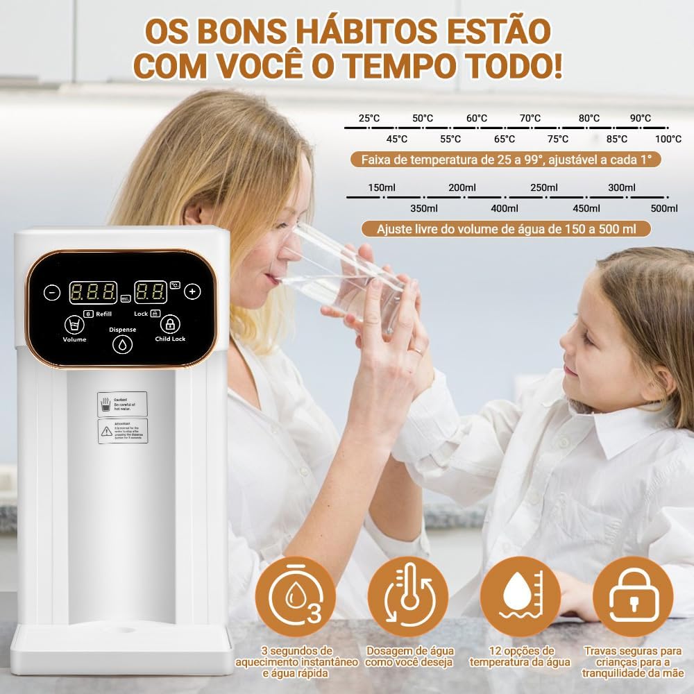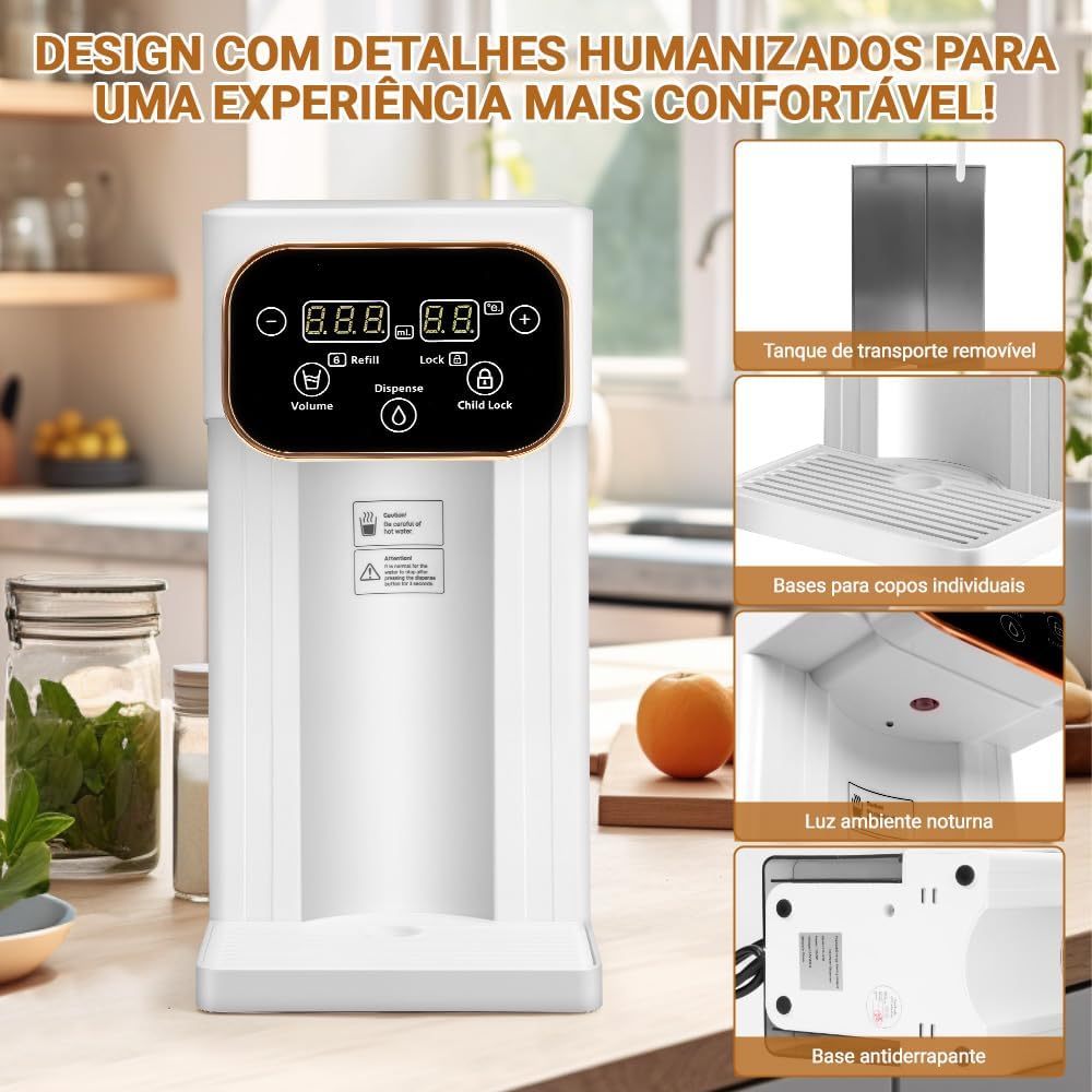 - Benefício 2: Design Elegante e Compacto: O design branco e minimalista do Branco, Bebedouro, Temperatura Ajustável de 25 a 99 °C Saída… combina com qualquer ambiente. Além disso, seu tamanho compacto o torna ideal para cozinhas menores ou escritórios. Ocupa pouco espaço e ainda dá um toque moderno ao ambiente.