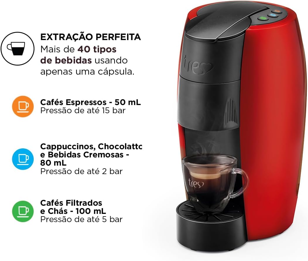 Cafeteira Espresso LOV Vermelha, 127V – TRES 3 Corações