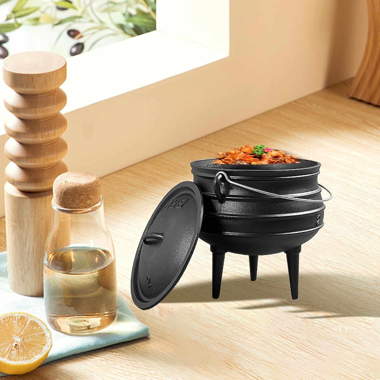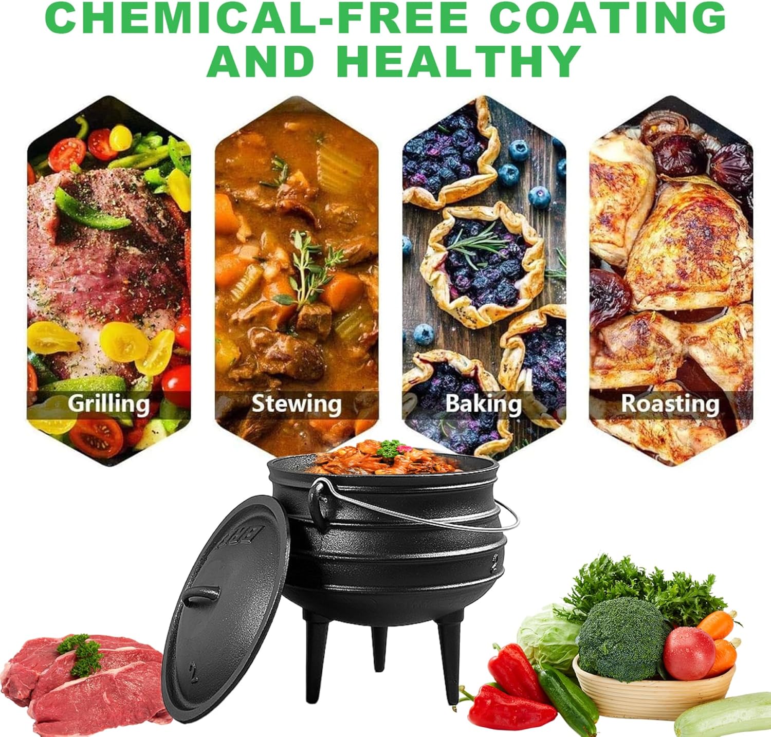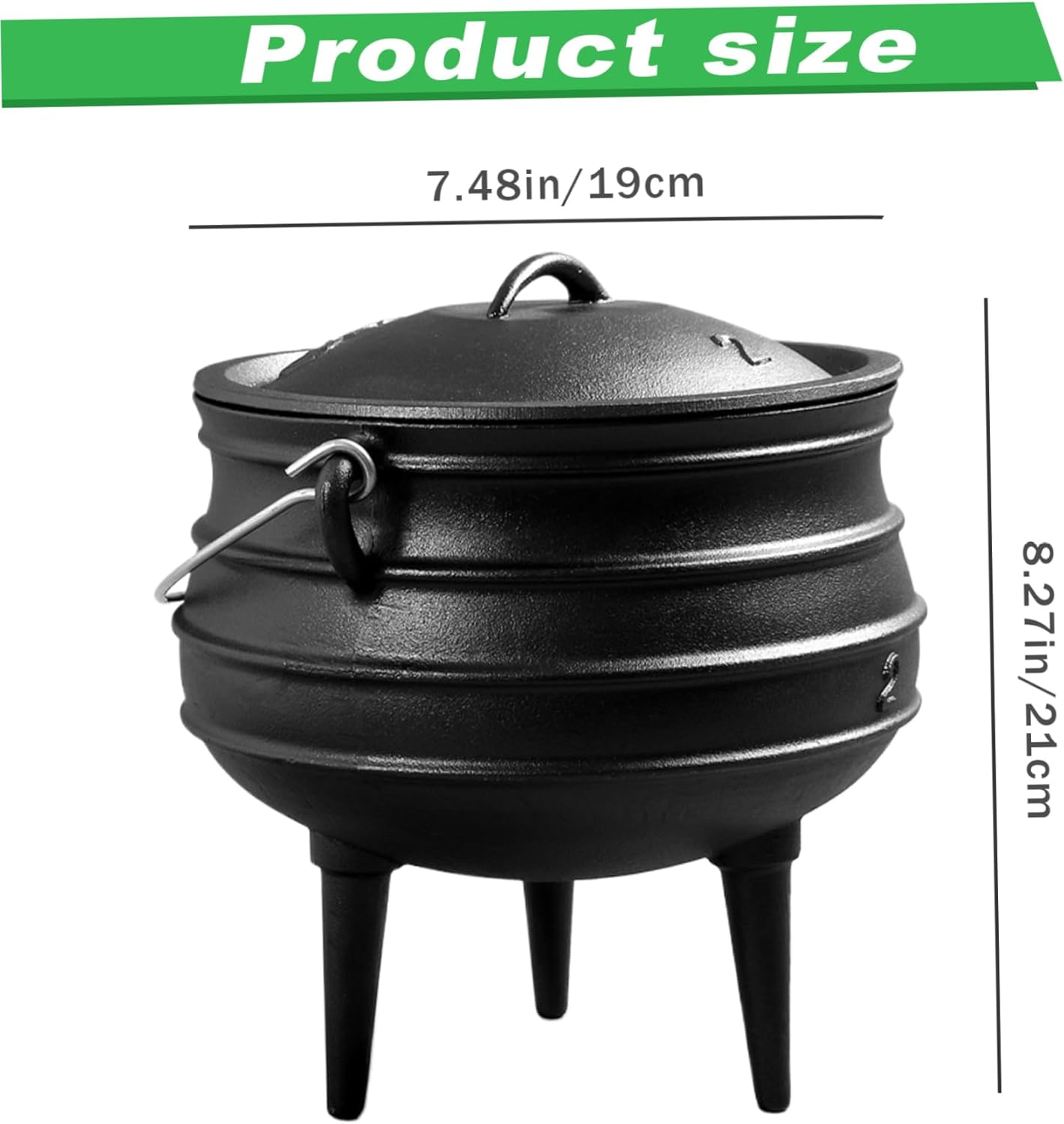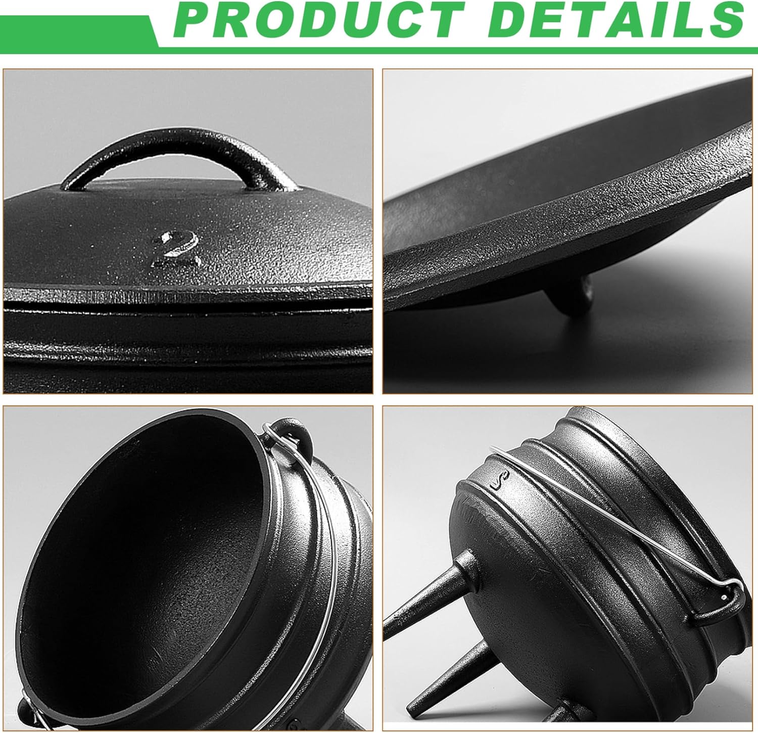 Design prático: equipado com 3 pernas longas, o caldeirão de ferro fundido oferece posicionamento estável sobre fogo ou brasas. A tampa incluída ajuda a bloquear a umidade e os sabores, enquanto a alça resistente permite fácil movimentação, transporte e cozimento pendurado.