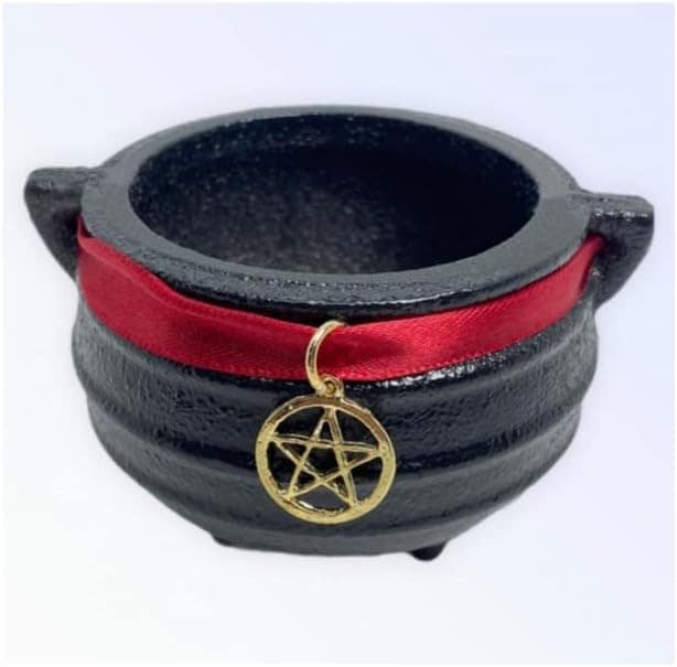 Caldeirão Bruxa Tripé em Ferro Fundido com Pentagrama 100ml Caldeirão tripé em ferro fundido Peso: 400 gr Diâmetro da boca:5,5 cm Altura: 6 cm Capacidade: 100 ml Observação: A limpeza de seu produto deve ser feita apenas com esponja, nunca utilizar lã de aço sem tampa. Acompanha Pentagrama. Após ser lavado secar em fogo baixo. O caldeirão é um símbolo típico e poderoso em várias culturas principalmente na Wicca e umbanda. é um instrumento de força mística, magia e transformação. As bruxas têm muito usos práticos para caldeirões. Enviamos o seu pedido em até 24 horas após a confirmação de pagamento! Caso tenha alguma dúvida nos mande mensagem que respondemos rapidinho para te ajudar da melhor forma possível!