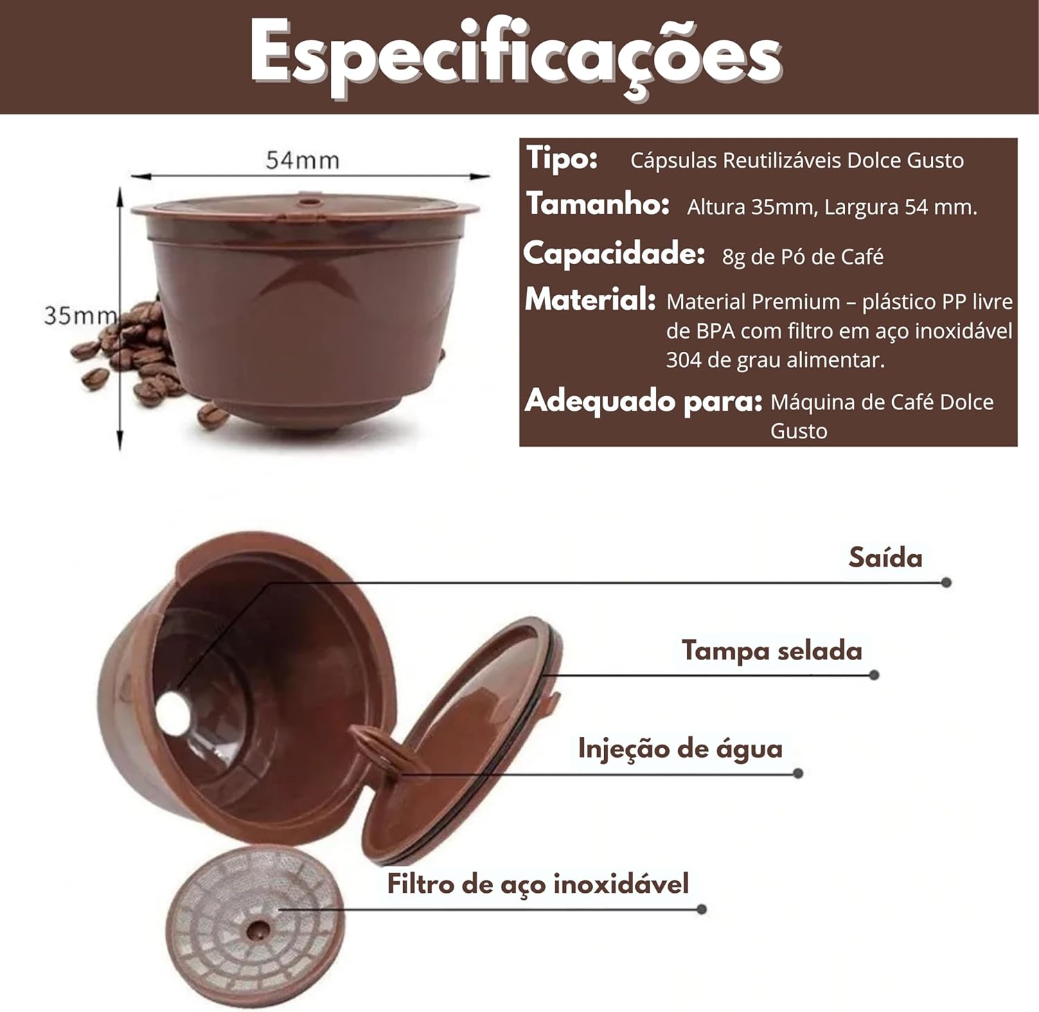 Review: Quanto a entrega foi tudo certinha, porém não gostei do produto, qua do vou fazer café fica vazando água pela cápsula, a vedação não é boa.