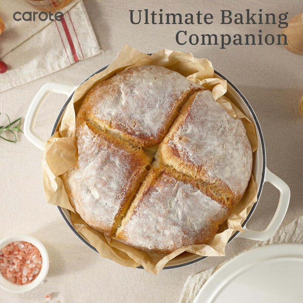 ✅ Assar Pães: A tampa ajuda a criar vapor, resultando em pães com casca crocante e miolo macio.
