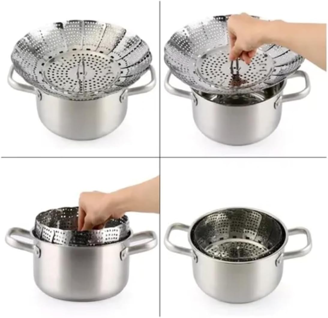 Cozimento saudável: preserva vitaminas e nutrientes ao evitar contato direto com água Ajuste universal: design retrátil se adapta a panelas de diâmetro até 26 cm