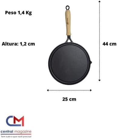 Aqui estão as especificações técnicas da Chapa Bistequeira Redonda Em Ferro Fundido Frigideira: