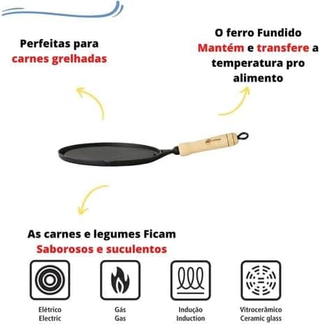 Perguntas Frequentes sobre Chapa Bistequeira Redonda Em Ferro Fundido Frigideira