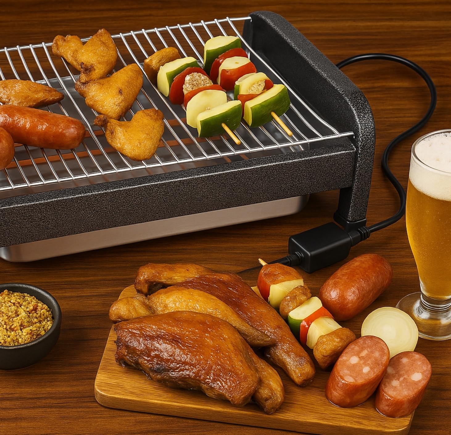 - Experimente com legumes e outros acompanhamentos: A churrasqueira elétrica também é ótima para assar legumes, queijos e outros acompanhamentos.