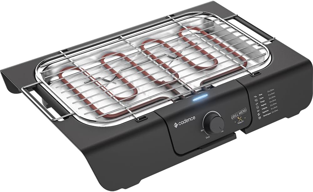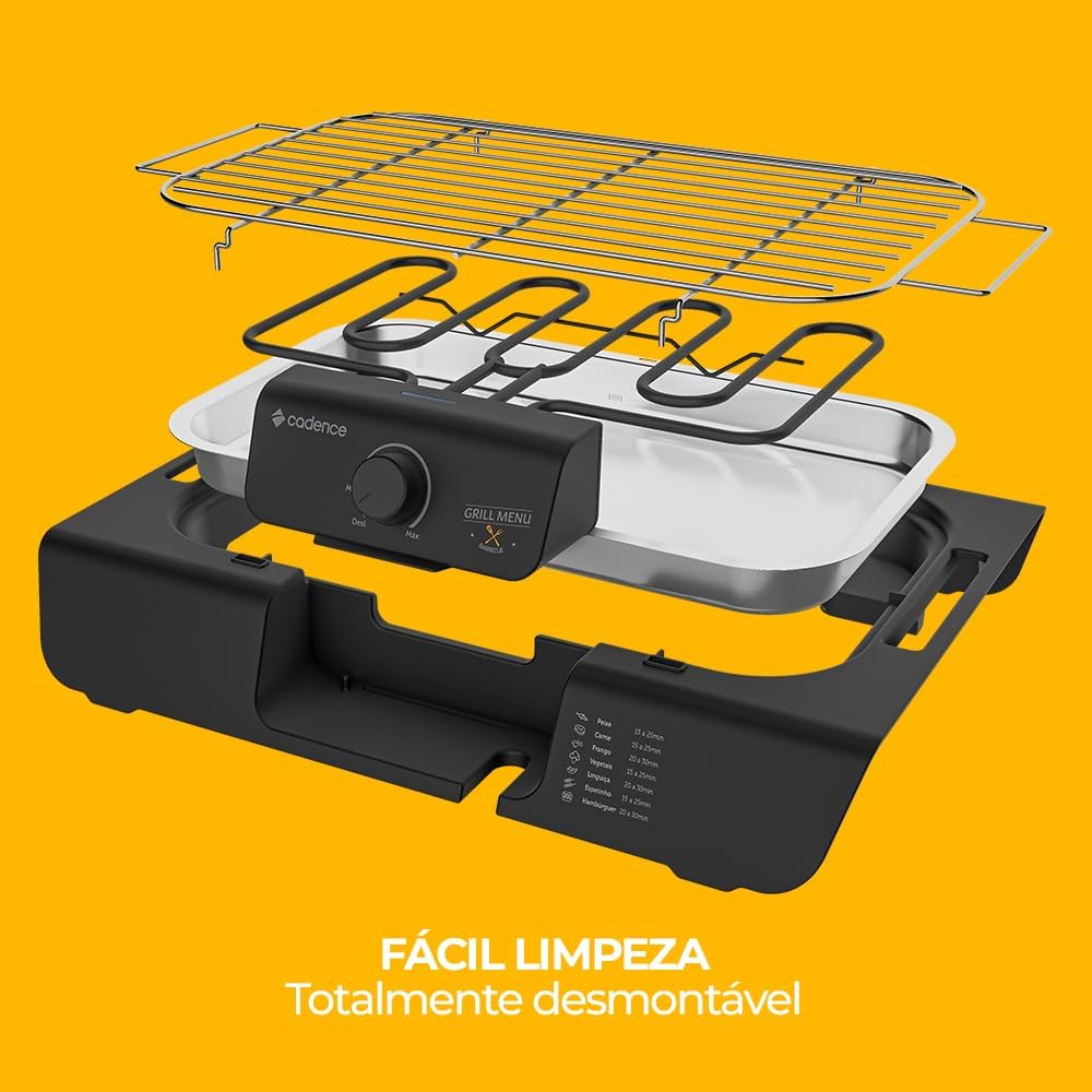 Review: Excelente! Amei! Fácil de montar, de usar e de limpar. É grande e assa rapidinho, então para quem mora com a família também é uma boa escolha.Não gera fumaça, então é ótima para quem mora em apartamento ou locais pequenos.Leve, o que a torna perfeira para transportar e movimentar pela casa.Ademais, o cabo de energia é curto, mas deu certo na minha cozinha.Leiam o manual de instrução e não esqueçam a água na bandeja.