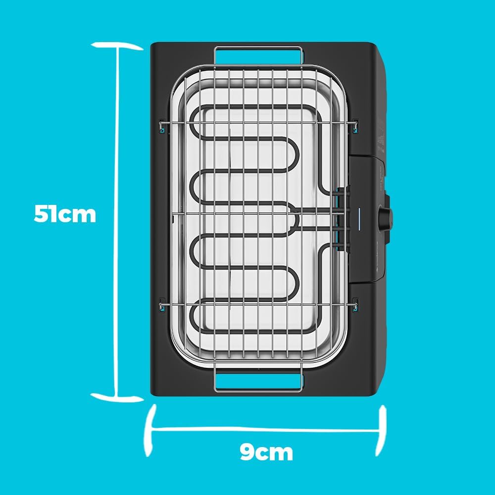 - Praticidade: É só ligar na tomada e pronto! Sem precisar acender carvão, esperar esquentar, nem se preocupar com a fumaça.