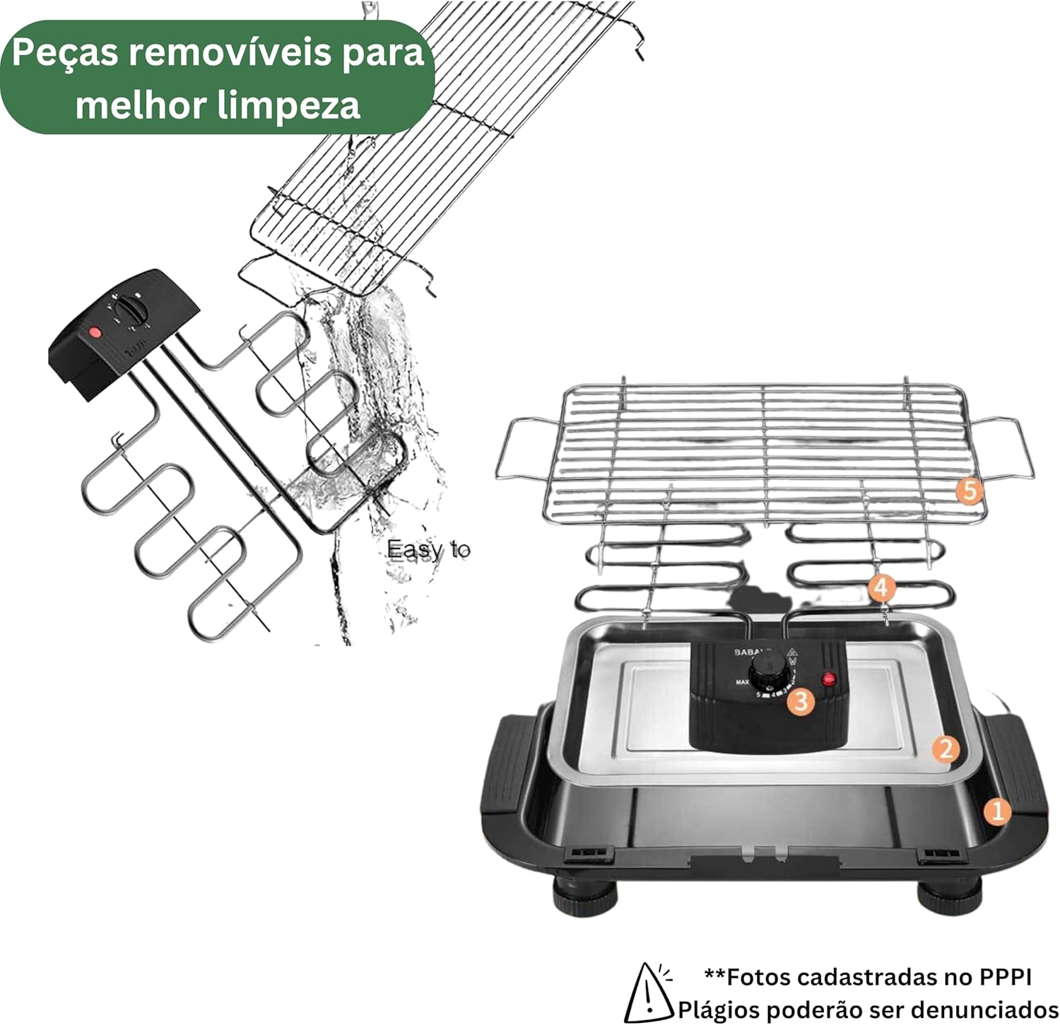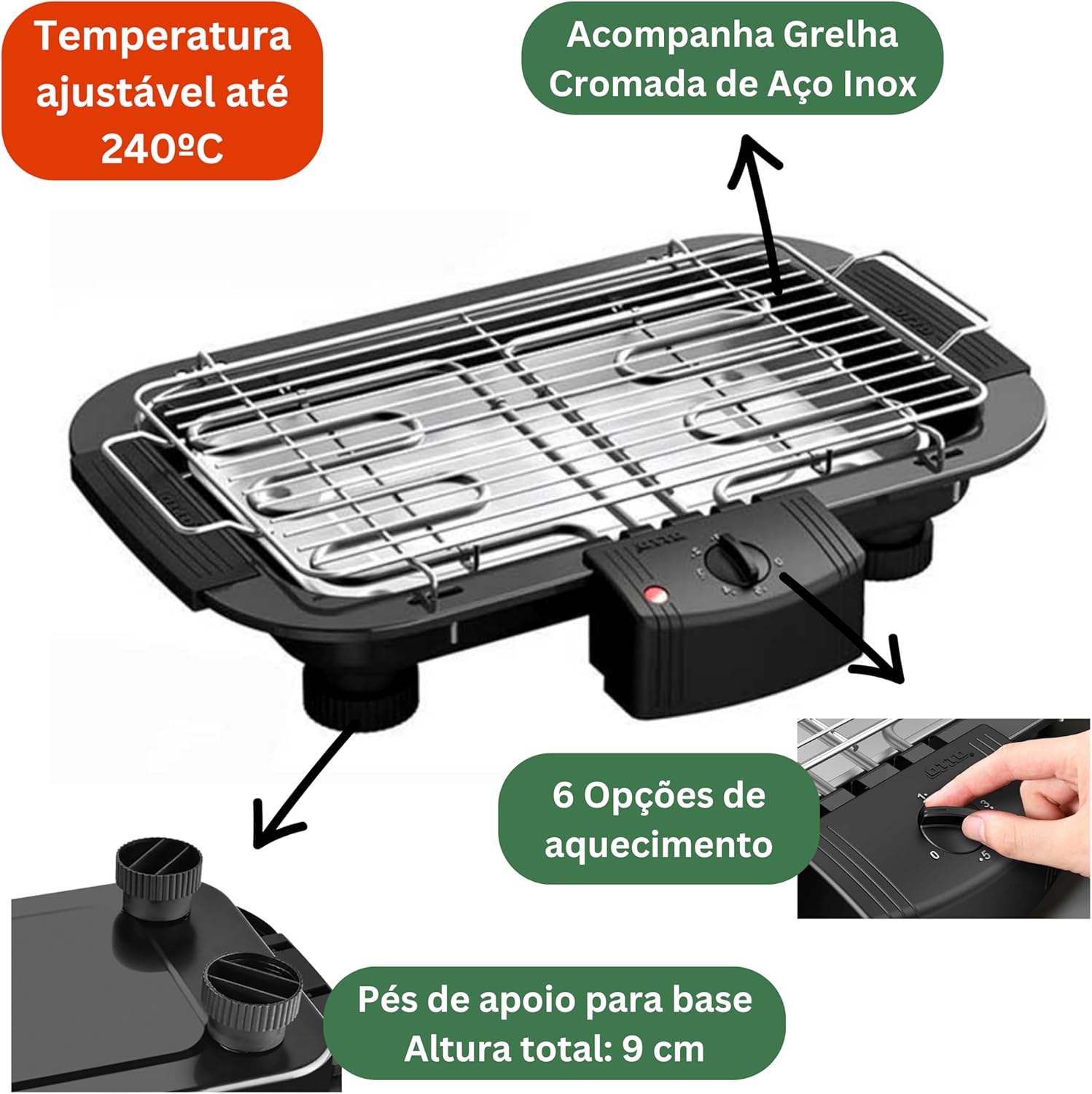 - Praticidade: Esqueça a sujeira do carvão e a dificuldade de acender o fogo. É só ligar na tomada e esperar esquentar.