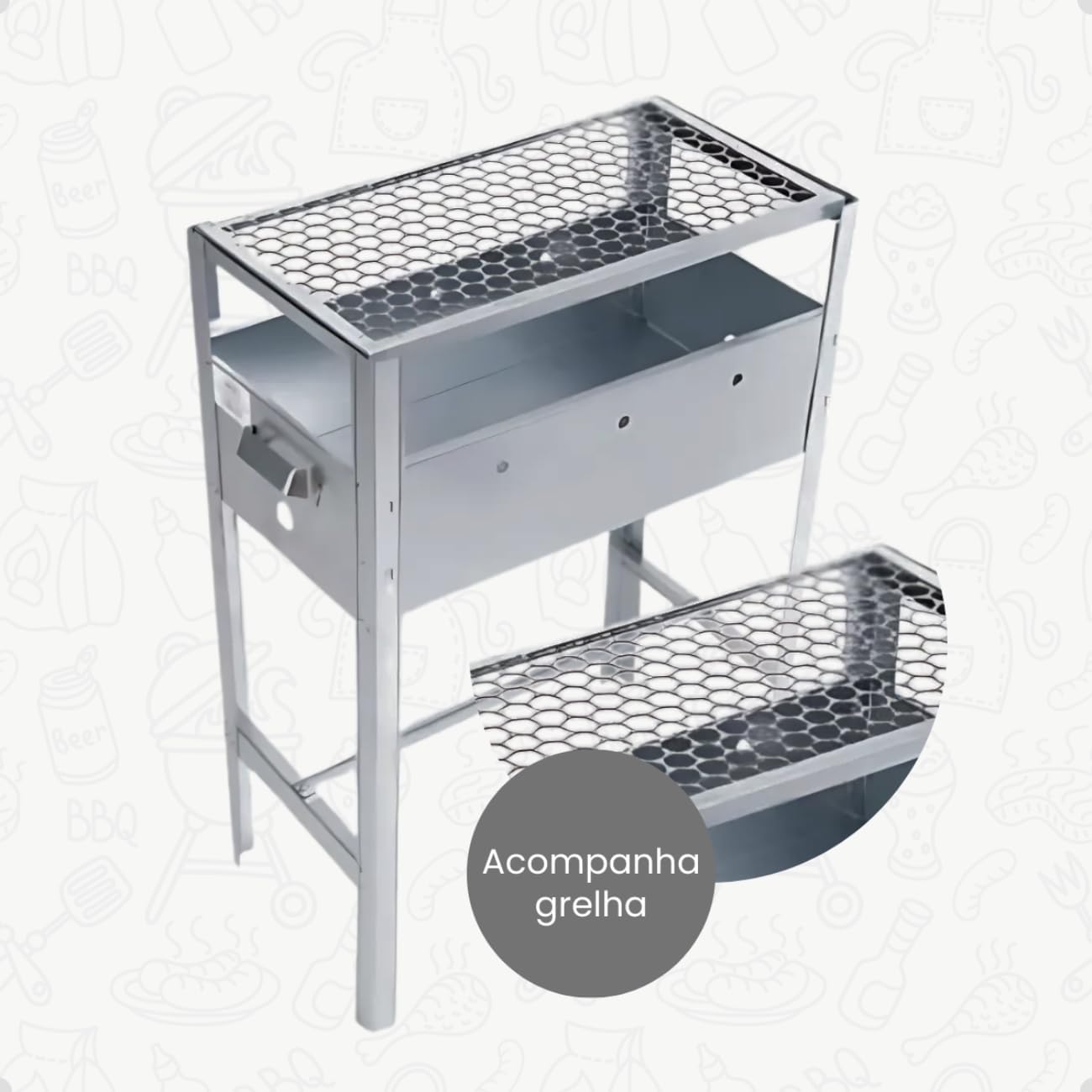 Churrasqueira Galvanizada com Grelha e Pés Articulados (28x60cm): A Companheira Ideal para Seus Momentos de Lazer