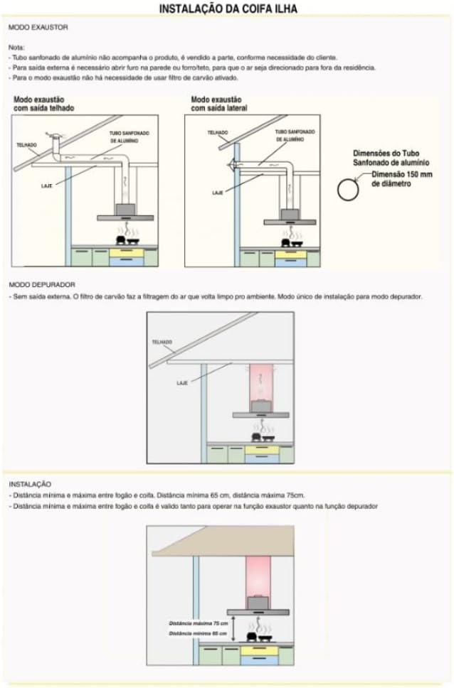 É crucial entender a diferença entre exaustor e depurador. A coifa de ilha pode funcionar como um ou outro, e a escolha depende das características da sua cozinha.