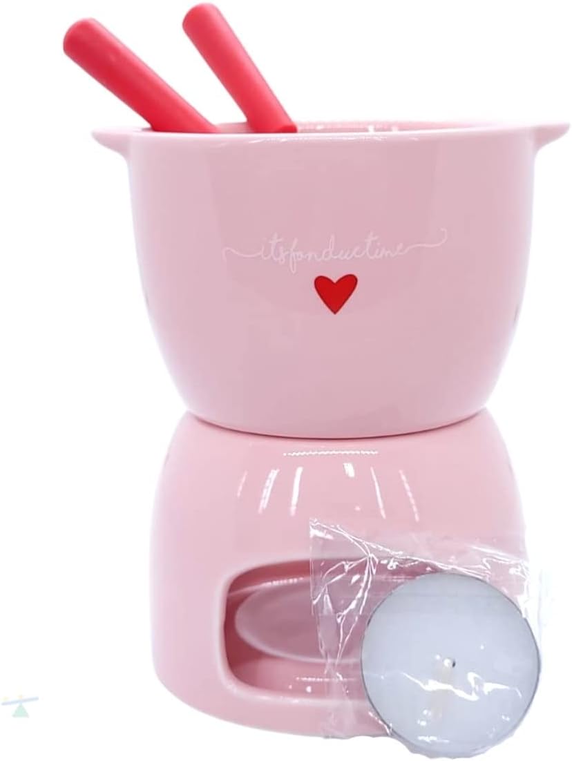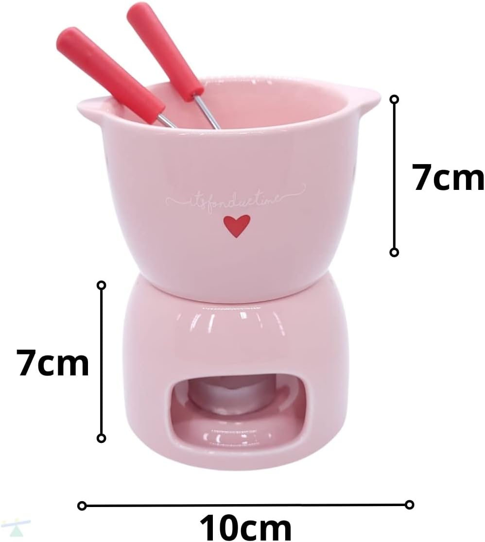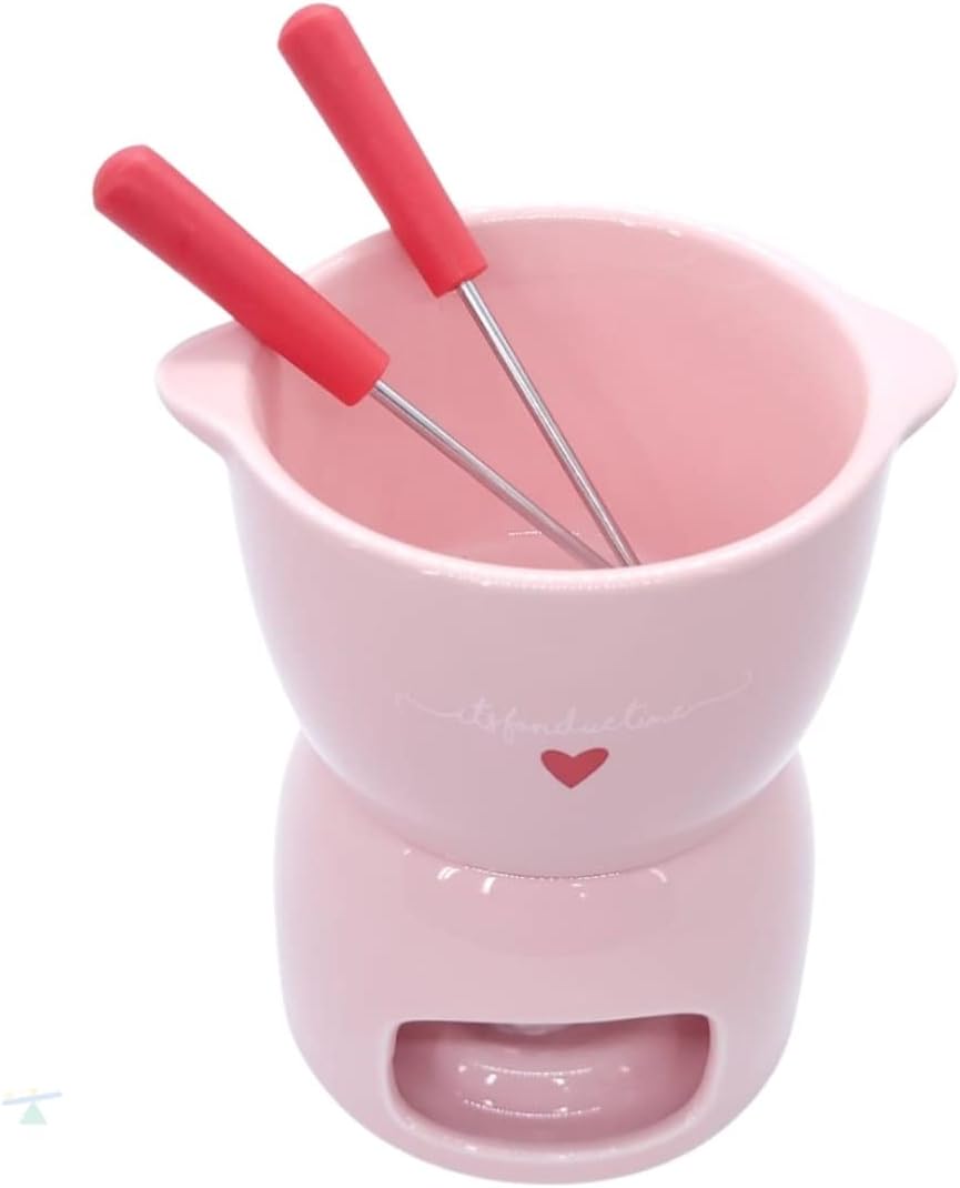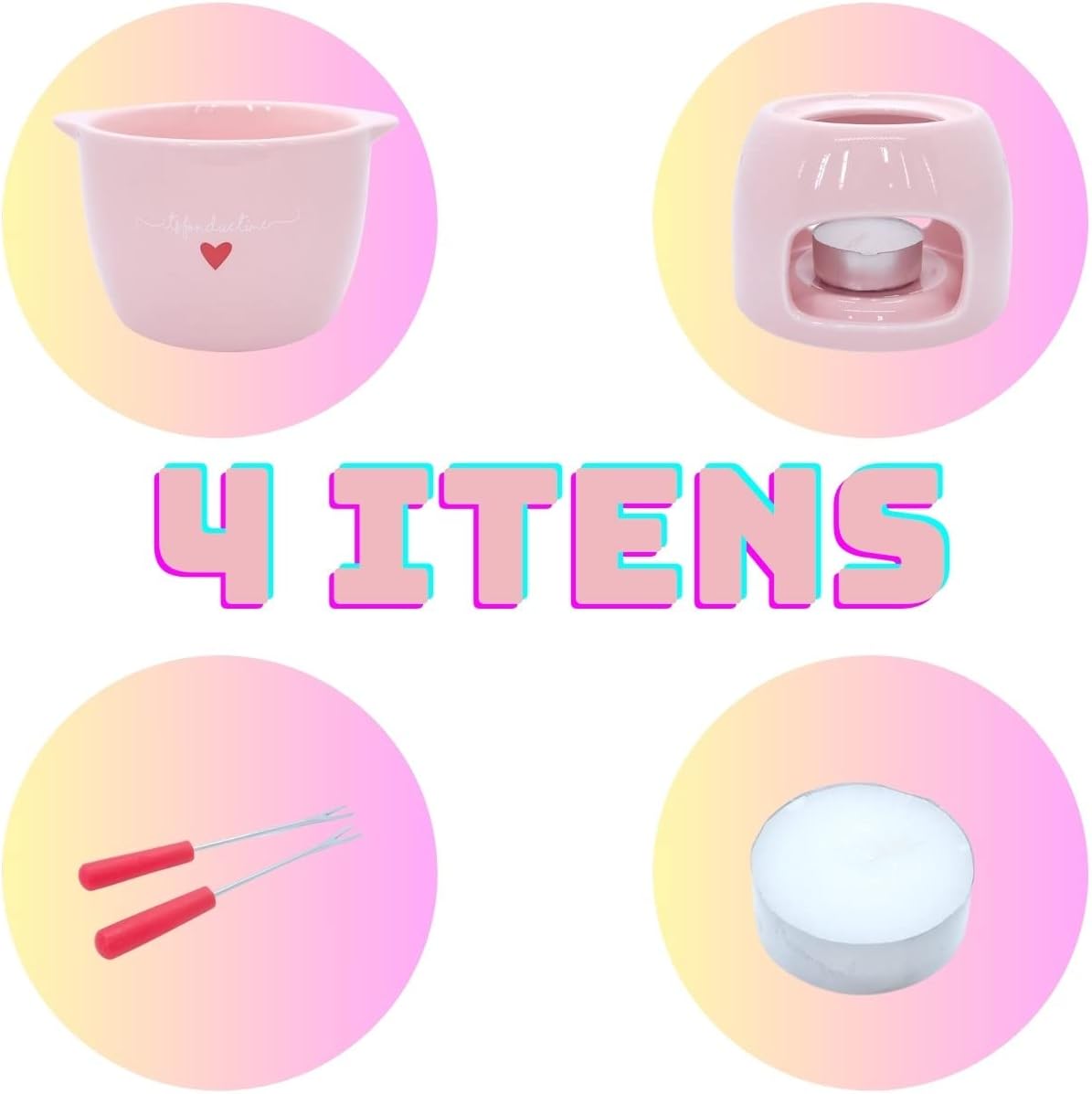 - É um conjunto de fondue que inclui 5 peças na cor rosa (RS) no estilo Lamour.