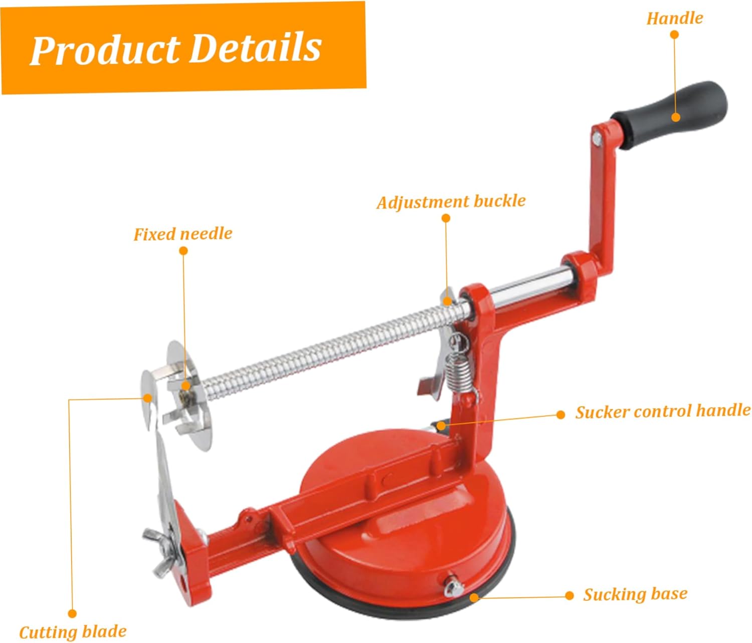 O descascador de batatas será capaz de descascar, tirar o caroço e fatiar ao mesmo tempo em apenas alguns segundos. A base de sucção de borracha do cortador espiral de batata prende a ferramenta firmemente no lugar sem escorregar, e a base de sucção mantém a máquina firmemente na bancada. A base de sucção de borracha do cortador espiral de batata prende a ferramenta firmemente no lugar sem escorregar, e a base de sucção mantém a máquina firmemente no lugar. A base de sucção mantém a máquina firmemente no lugar na bancada. O cortador espiral de batata é a ferramenta perfeita para remover a casca de peras, batatas, vegetais e muito mais.