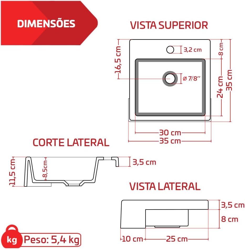 📌 O Que é o Cuba Pia De Semi Encaixe Branca Quadrada 35x35cm Rubelita Pa… e Por Que Está Fazendo Sucesso?