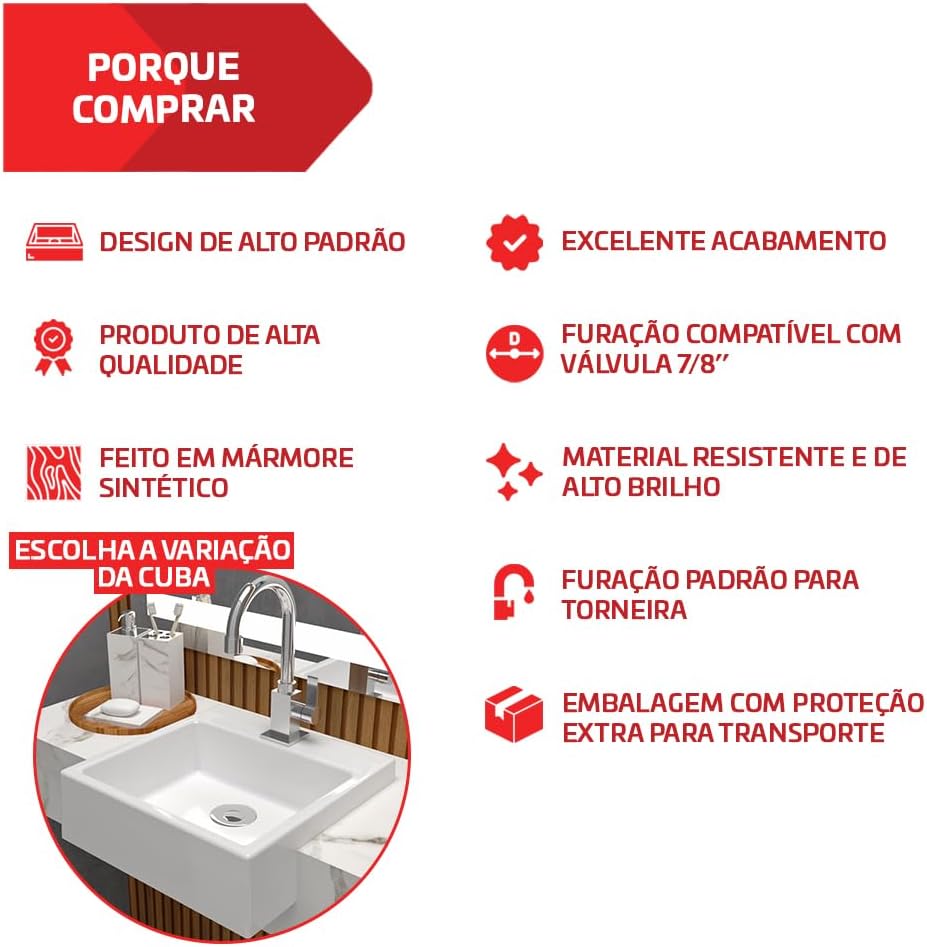 | Cuba Pia De Semi Encaixe Branca Quadrada 35x35cm Rubelita Pa… | R$R$289,90 | 4.5/5 | Alta performance e ótimo custo-benefício |