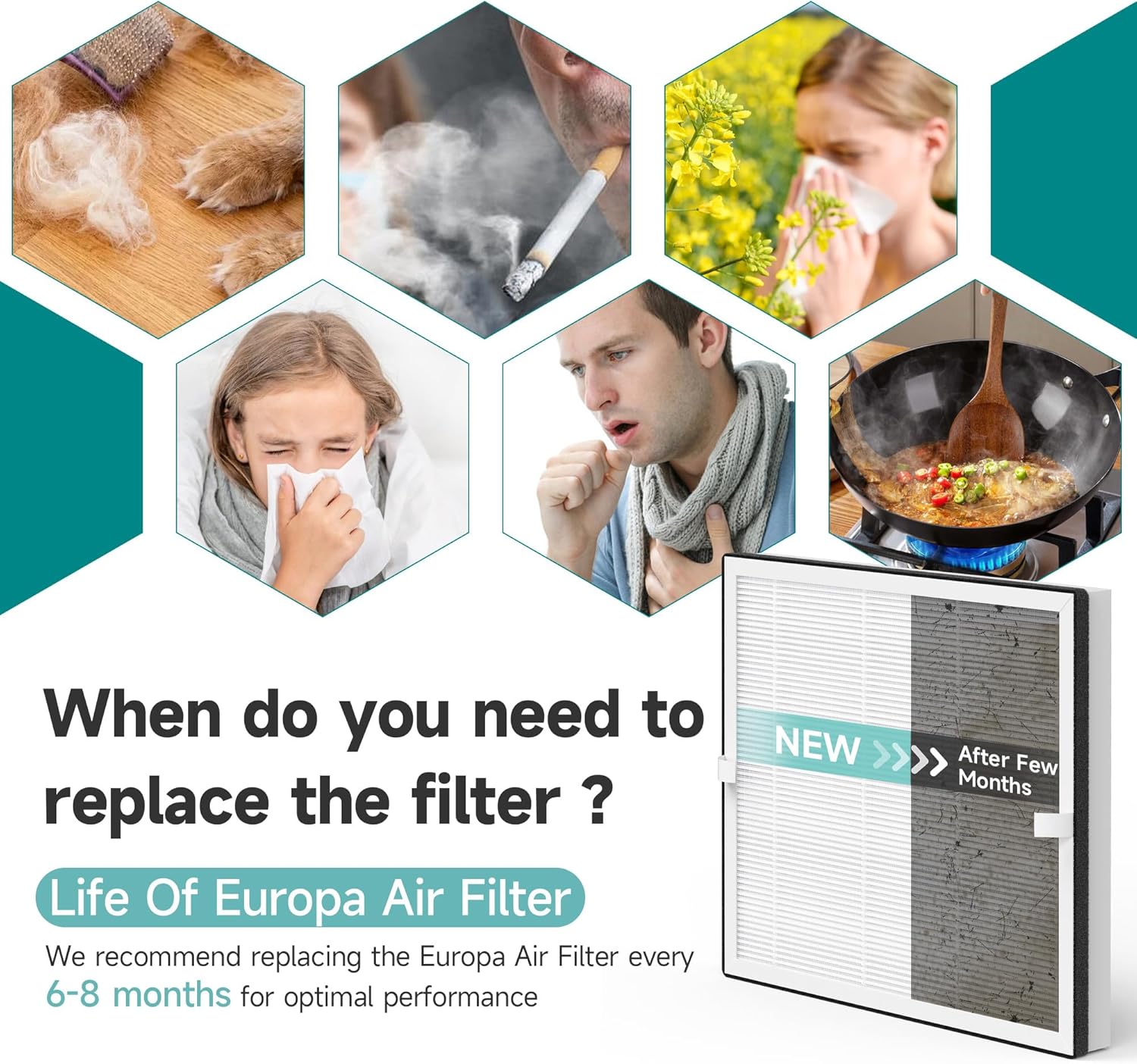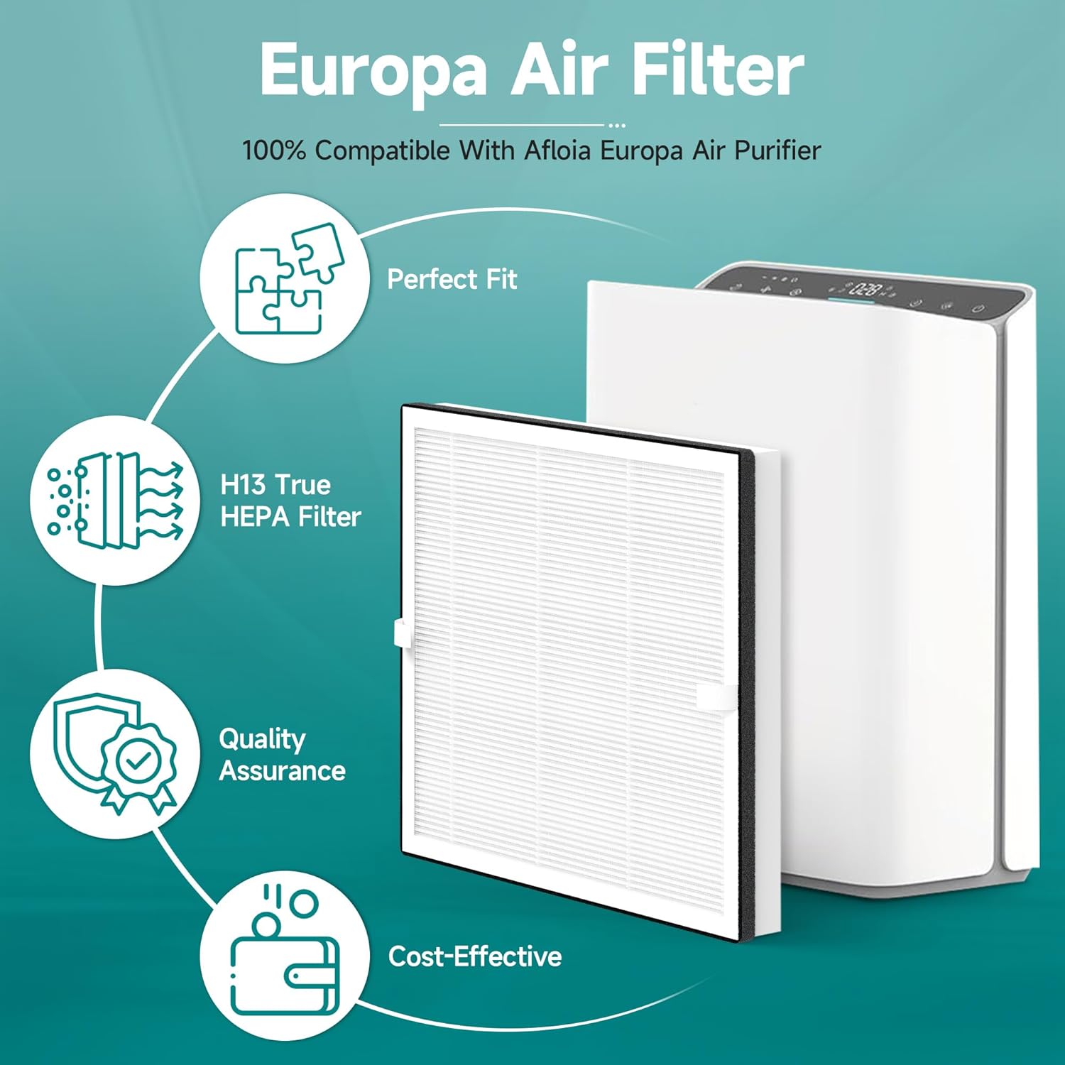 | Filtro de substituição Europa compatível com purificador de ar Afloia Europa | Ótima relação custo-benefício, fácil instalação, eficiente na remoção de alérgenos e odores. | Disponibilidade limitada em algumas lojas, durabilidade a longo prazo ainda em avaliação. |