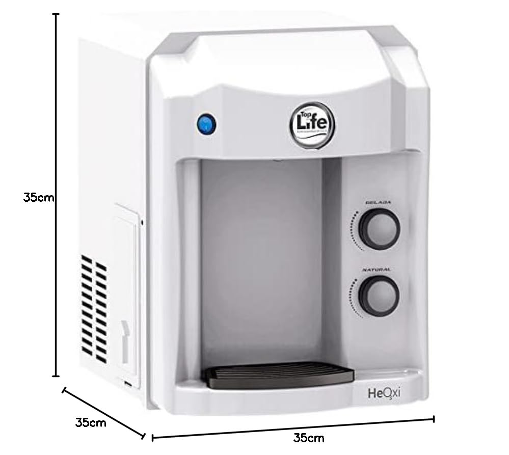 Purificador de água com UV Elimina bactérias e vírus; Fácil de usar. Não alcaliniza nem ioniza a água; Pode alterar o sabor da água.