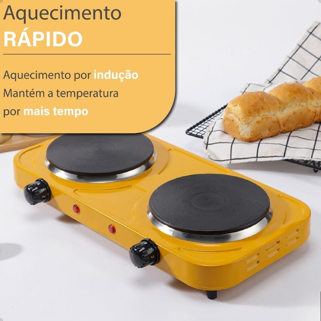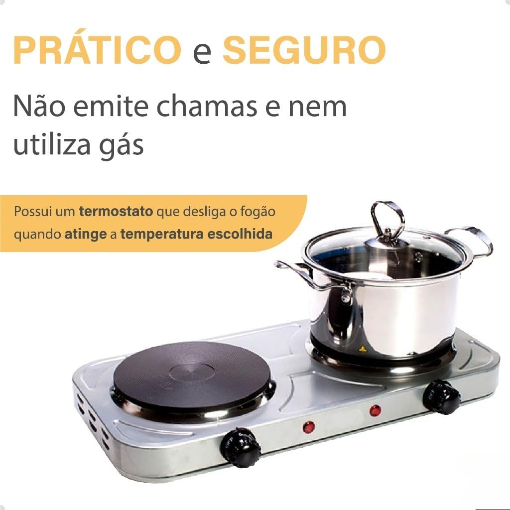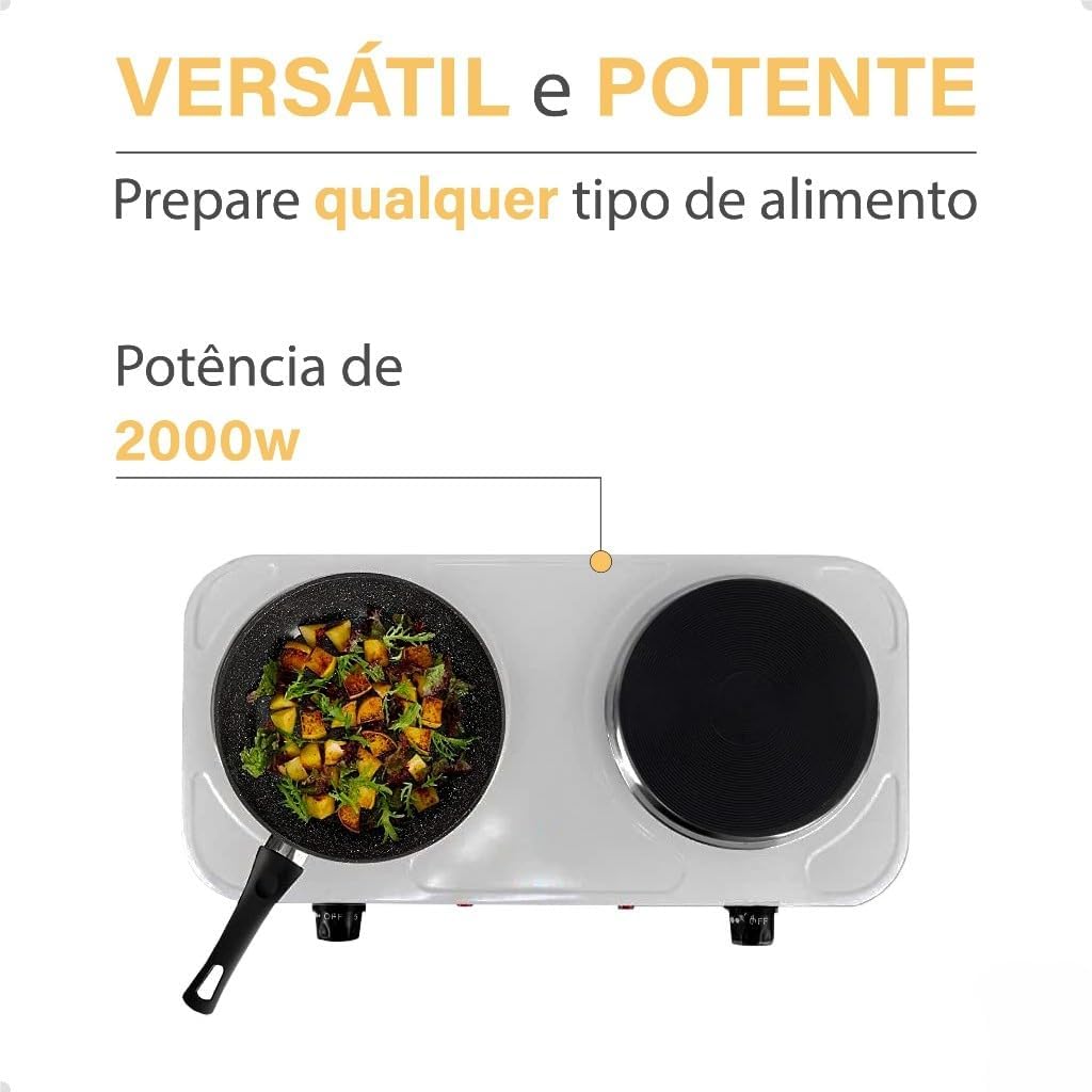 - Potência: Quanto maior a potência (em Watts), mais rápido o fogareiro aquece.