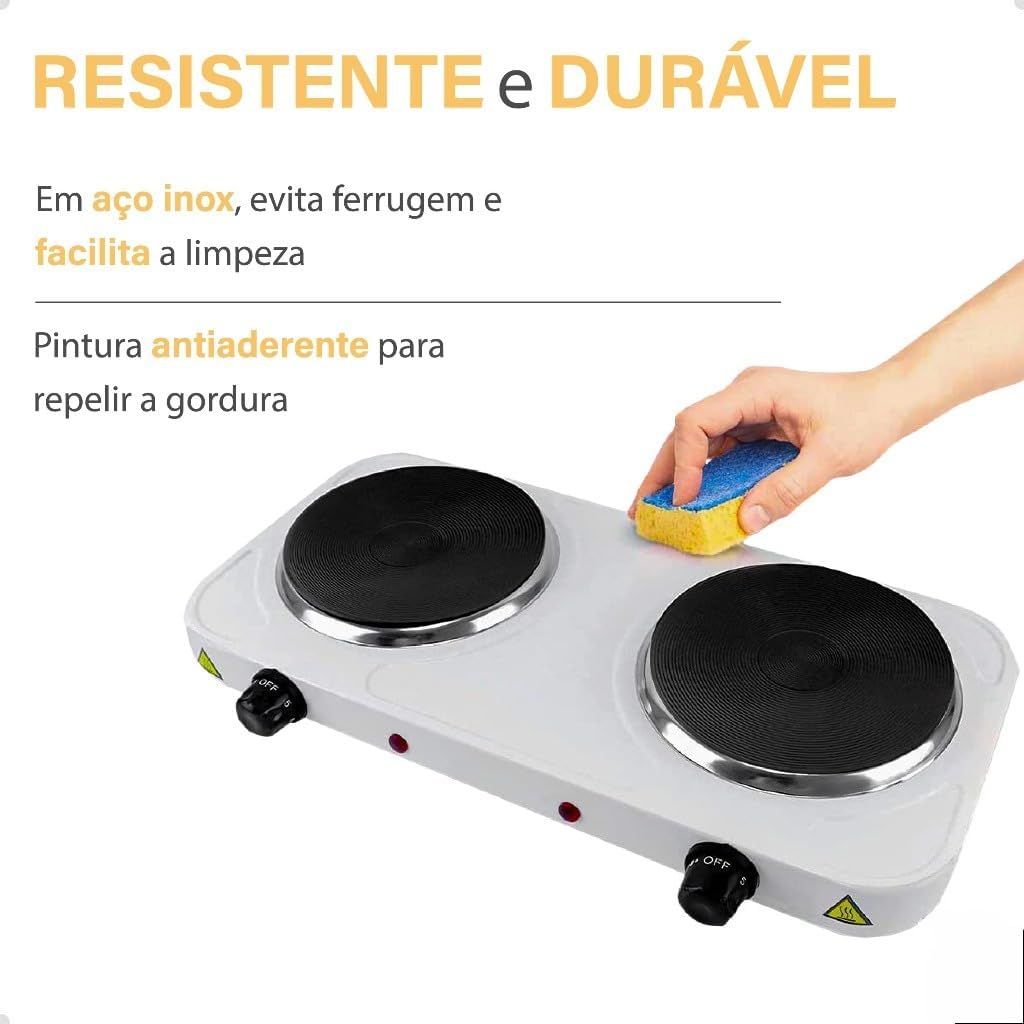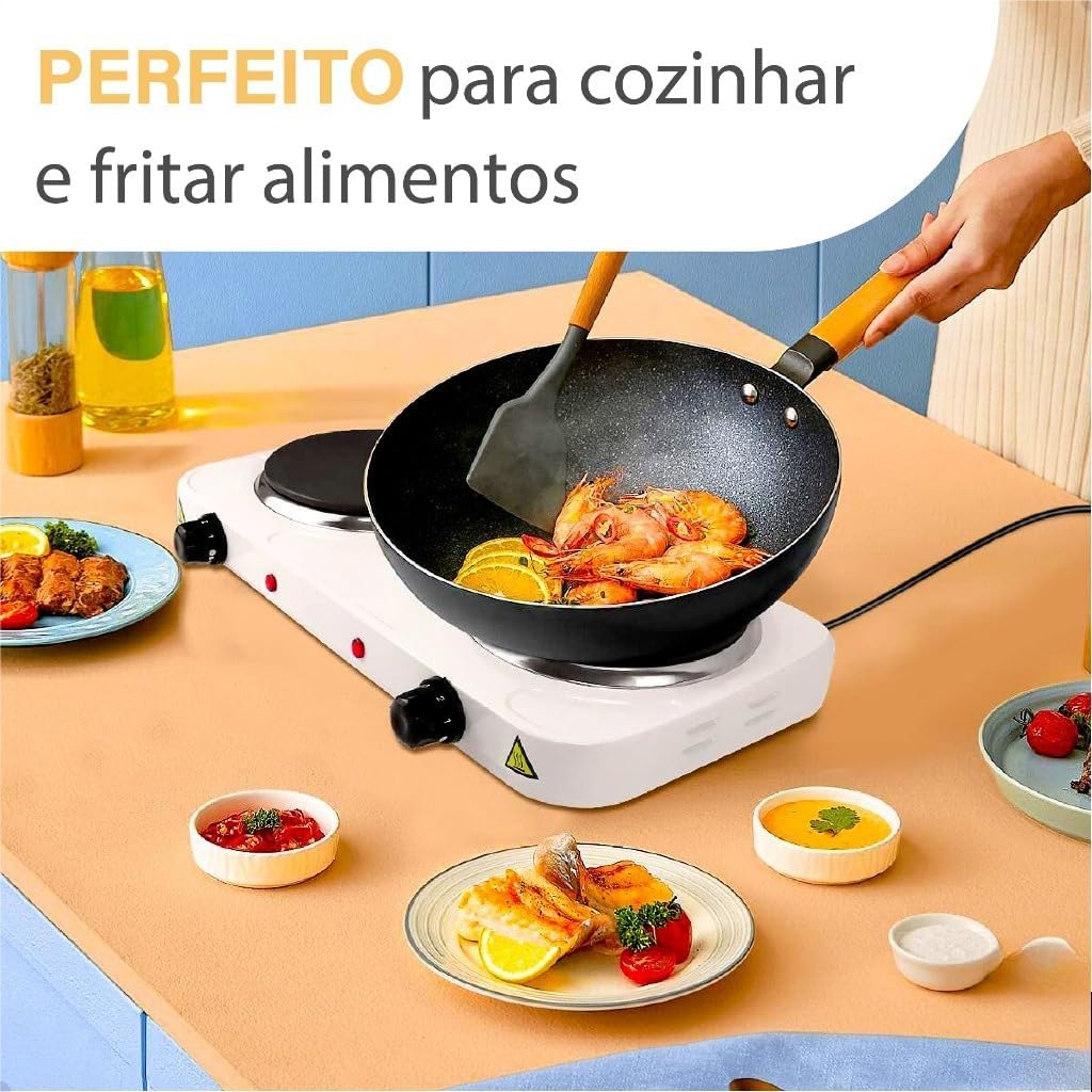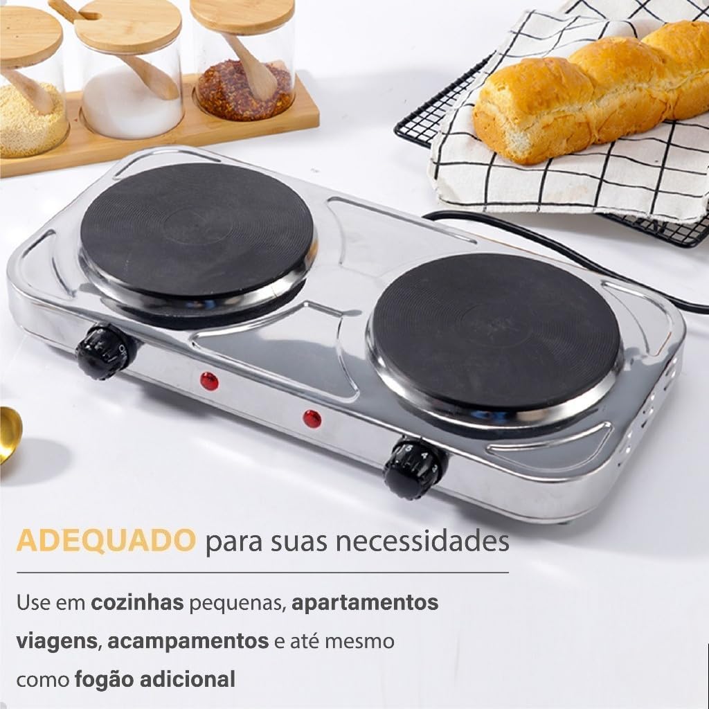 - Potência: Quanto maior a potência (em Watts), mais rápido o fogareiro aquece.