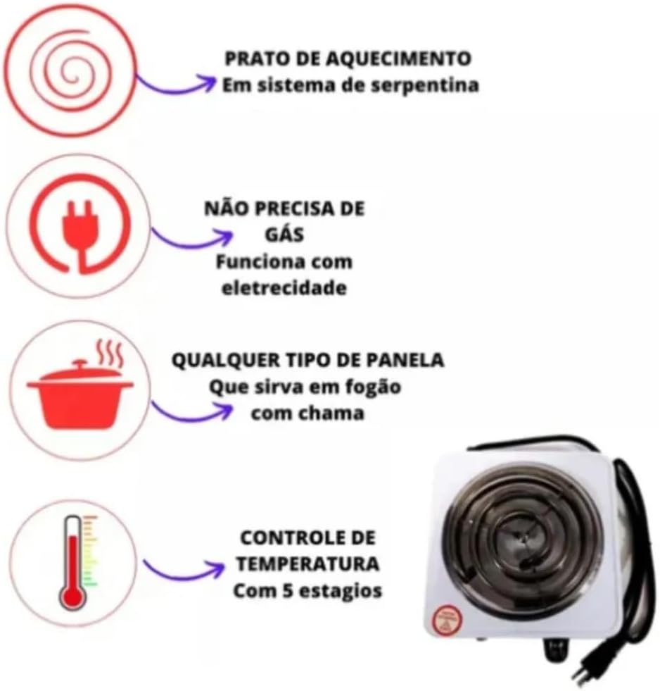 Fogareiro Elétrico Portátil, 1000W, Placa Única, 110V, Branc…
