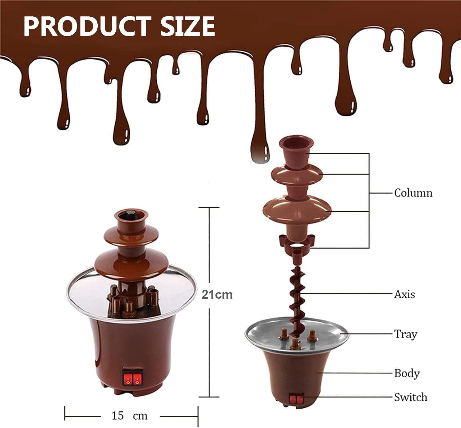 ✅ Decoração Atraente – A cascata de chocolate derretido cria um efeito visual encantador, perfeito para festas.