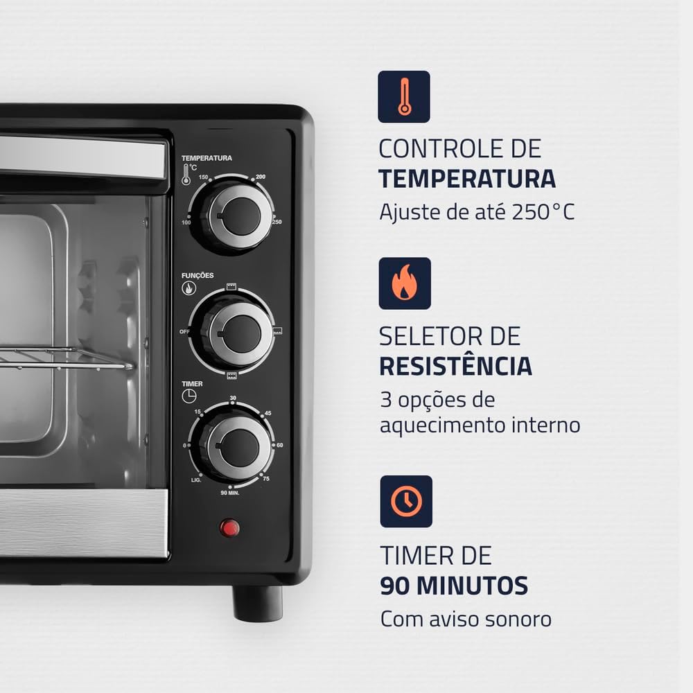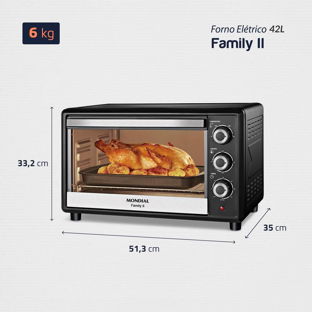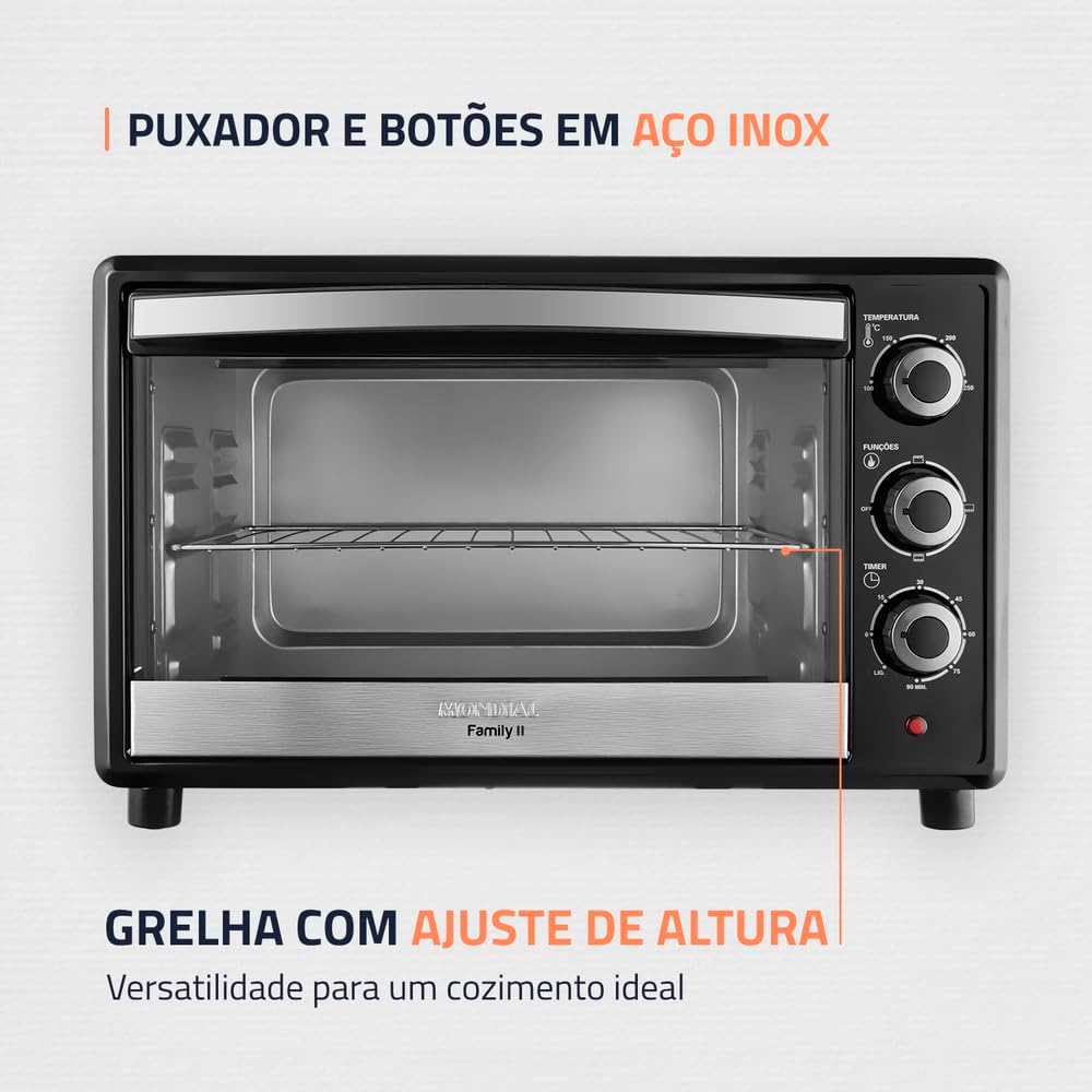 Forno Elétrico 42L Family II, Mondial, Preto/Inox, 1600W, 11…