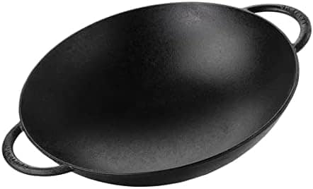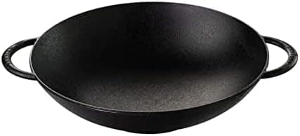 Este é um modelo de panela de ferro tradicional da culinária asiática, com estrutura arredondada e laterais mais altas, sendo apropriada para cozinhar uma grande quantidade de alimentos de uma só vez. Sua forma circular e aberta, contribui para que o líquido dos alimentos preparados na Frigideira Wok evapore com mais rapidez, agilizando o seu processo de cozinhar.