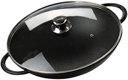 Frigideira Wok Ferro Fundido 36cm Duas Alças c/Tampa de Vidro: Cozinhe com Praticidade e Sabor!