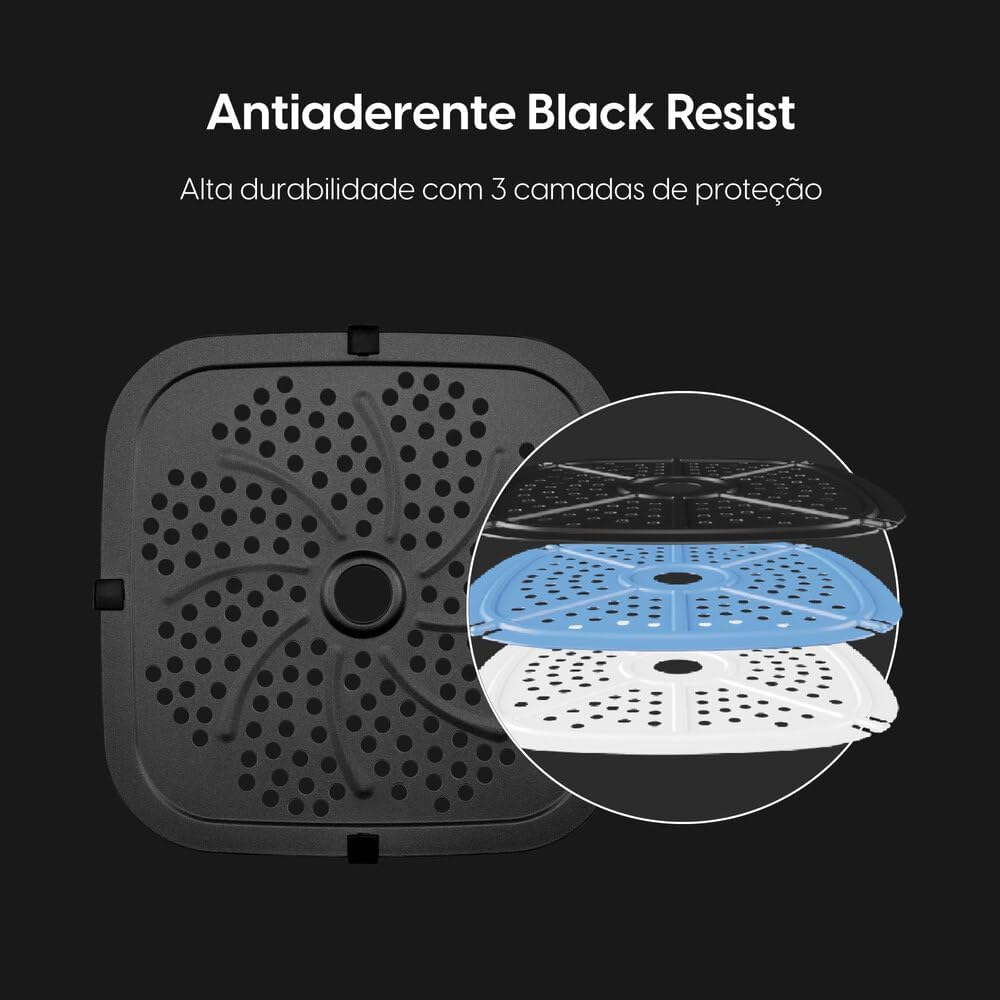 O acabamento da fritadeira sem óleo é de boa qualidade e parece ser durável. A cesta interna é removível e fácil de limpar, um ponto super positivo para o dia a dia. A capacidade de 4,2 litros me permitiu preparar porções generosas de batata frita, frango à passarinho e até mesmo pequenos bolos.