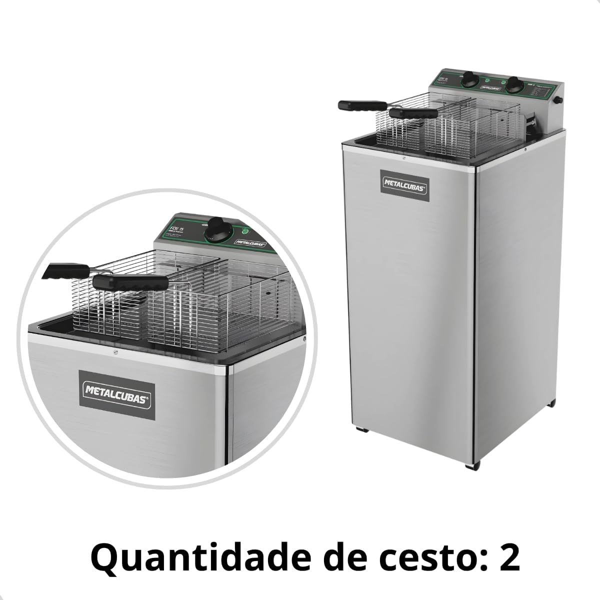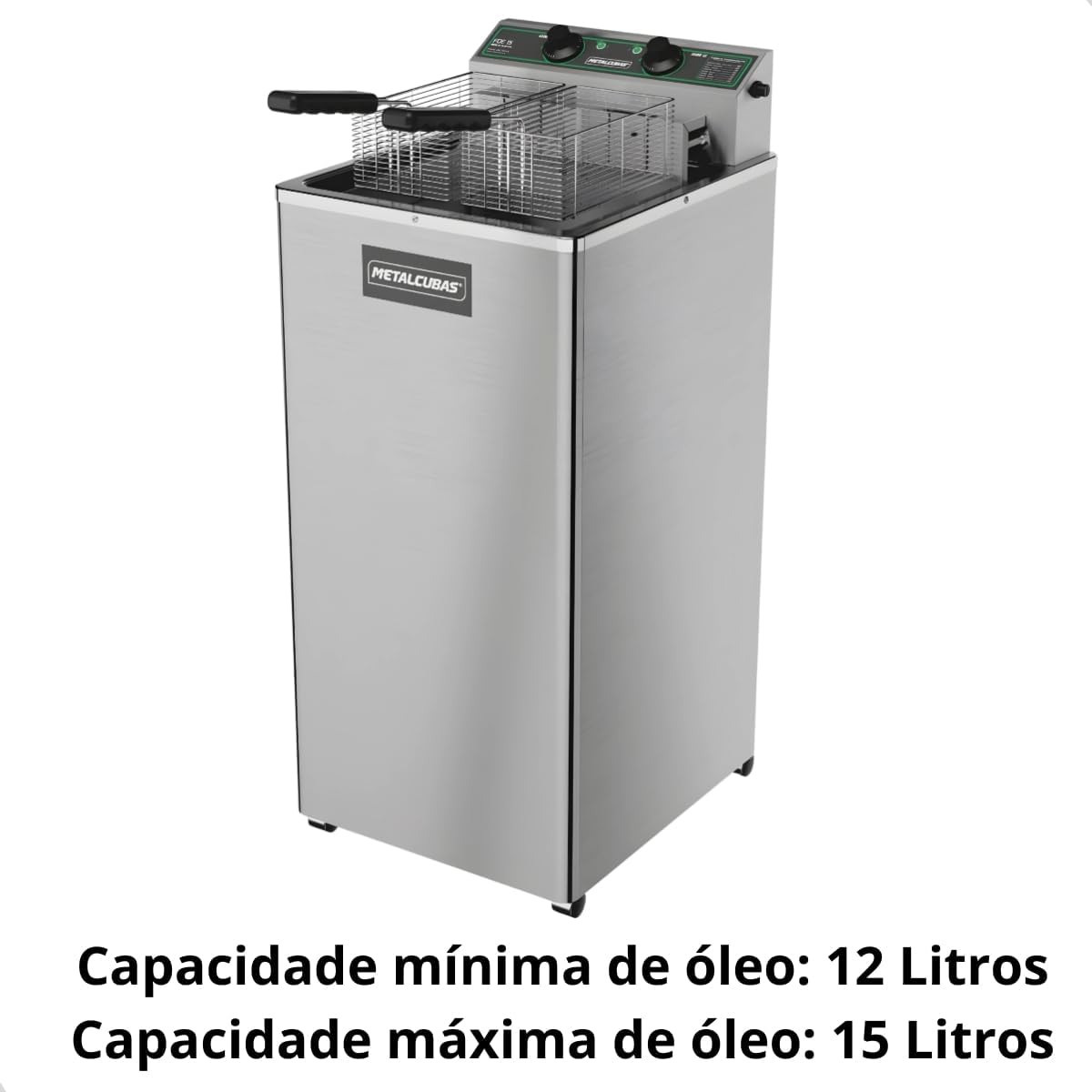 - Capacidade: A FOE 15P 8000 geralmente tem uma capacidade considerável de óleo (em torno de 15 litros, dependendo do modelo exato). Isso permite fritar grandes quantidades de alimentos de uma só vez, ideal para estabelecimentos com alta demanda.