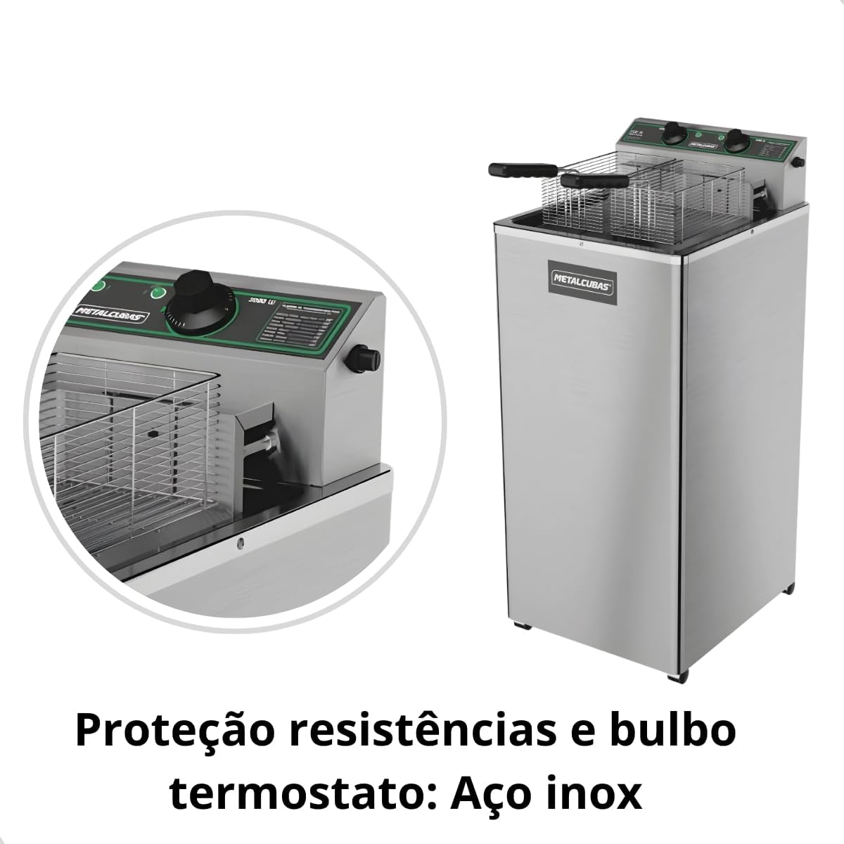 - Termostato Regulável: Permite ajustar a temperatura do óleo de acordo com o tipo de alimento que você está preparando. Essencial para garantir a crocância perfeita, seja para batatas, frango, salgadinhos ou outros petiscos.