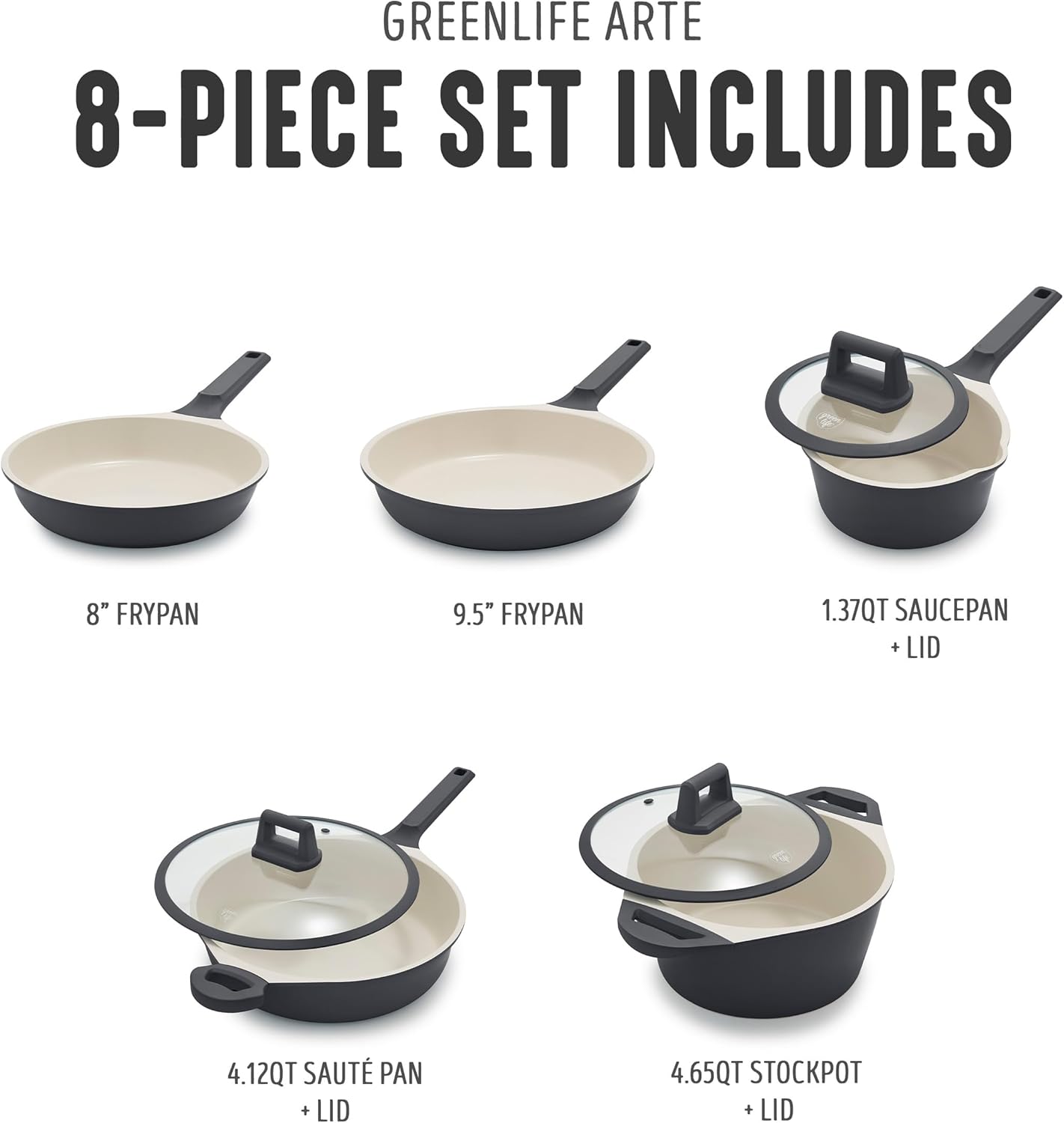 GreenLife Conjunto de 8 peças de panelas antiaderentes de ce... - imagem principal do produto
